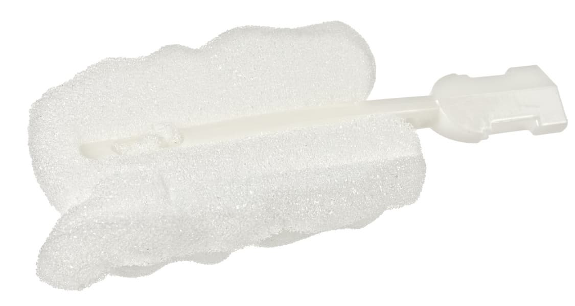 В комплекте имеется двухцветная (верхняя часть белая, а нижняя — голубая) пластиковая щеточка с мягким валиком для очистки стакана, состоящая из двух деталей, соединяющихся путем защелкивания одной в другую.