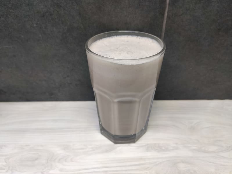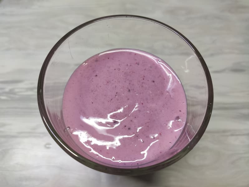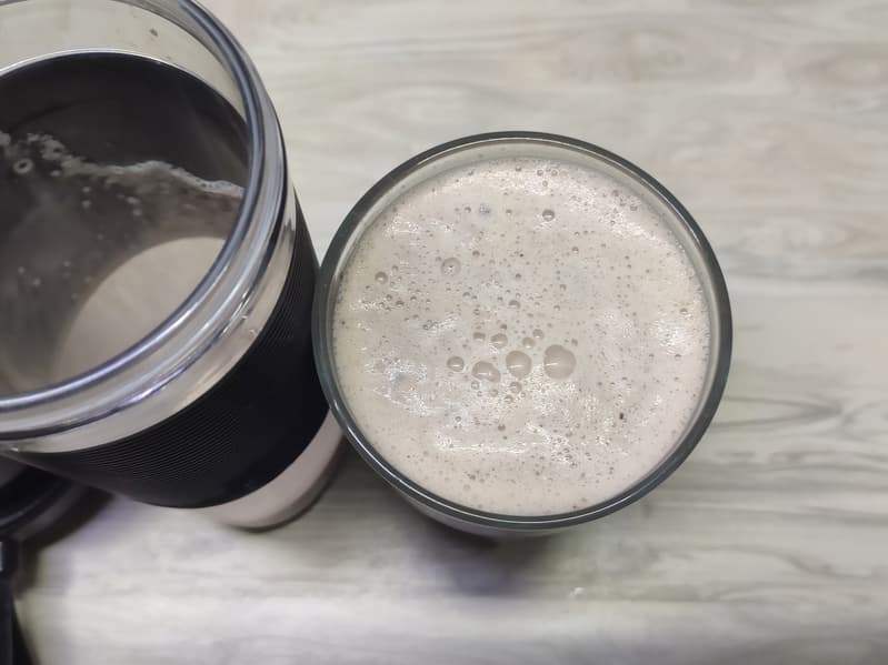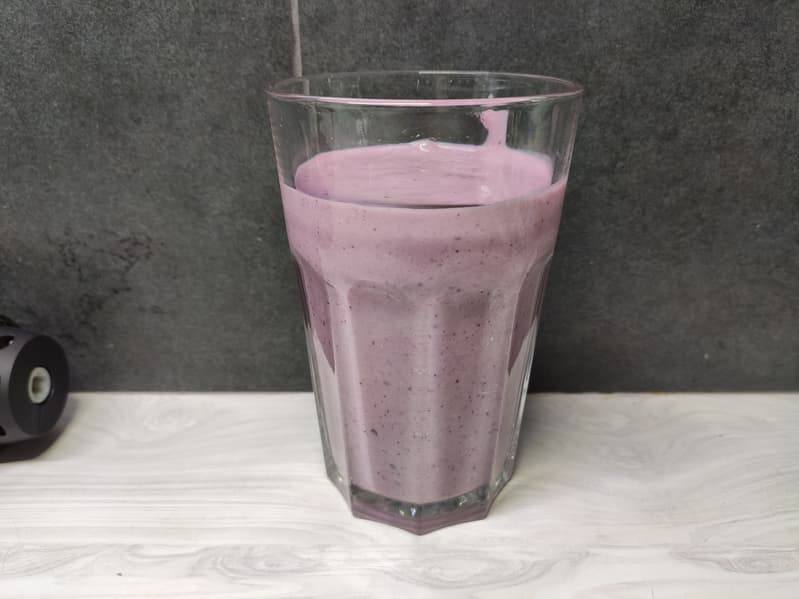 Смузи получился весьма густым, в напитке наблюдались достаточно крупные фрагменты овсянки и ягод, но для столь маломощного прибора это все равно хороший результат. Блендер, имея небольшой блок ножей, справился и с твердыми ягодами, и даже с хлопьями.