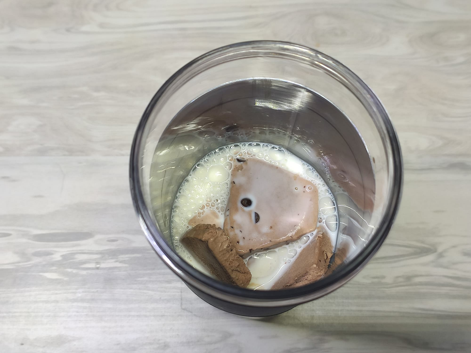 Для приготовления молочного коктейля мы взяли шоколадное мороженое с шоколадной крошкой и молоко.