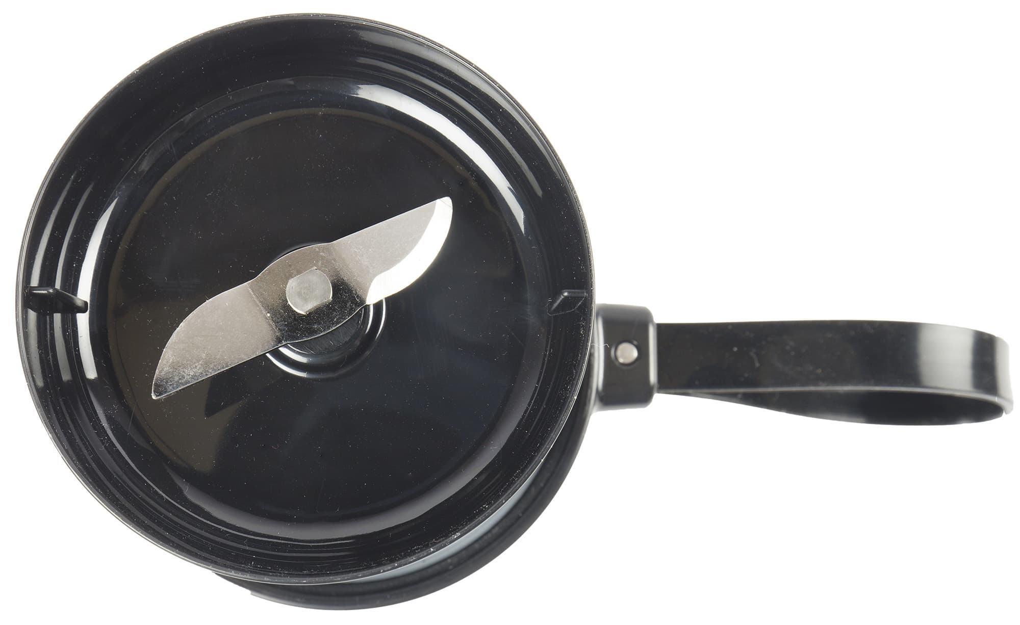 Внутри крышки расположен небольшой нож. У него две лопасти, каждая из которых имеет по одной остро заточенной стороне. Один лепесток ножа загнут наверх, другой — вниз.
