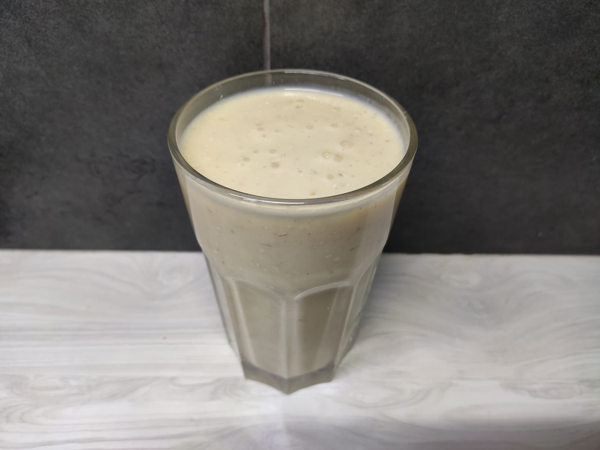 Смузи из банана, замороженного манго, овсяных хлопьев и молока