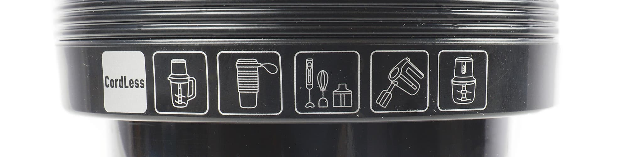 В центре крышки мы видим иконки семейства приборов Cordless — аккумуляторных приборов, которым не требуется постоянное подключение к сети (блендеры, измельчители, миксеры).