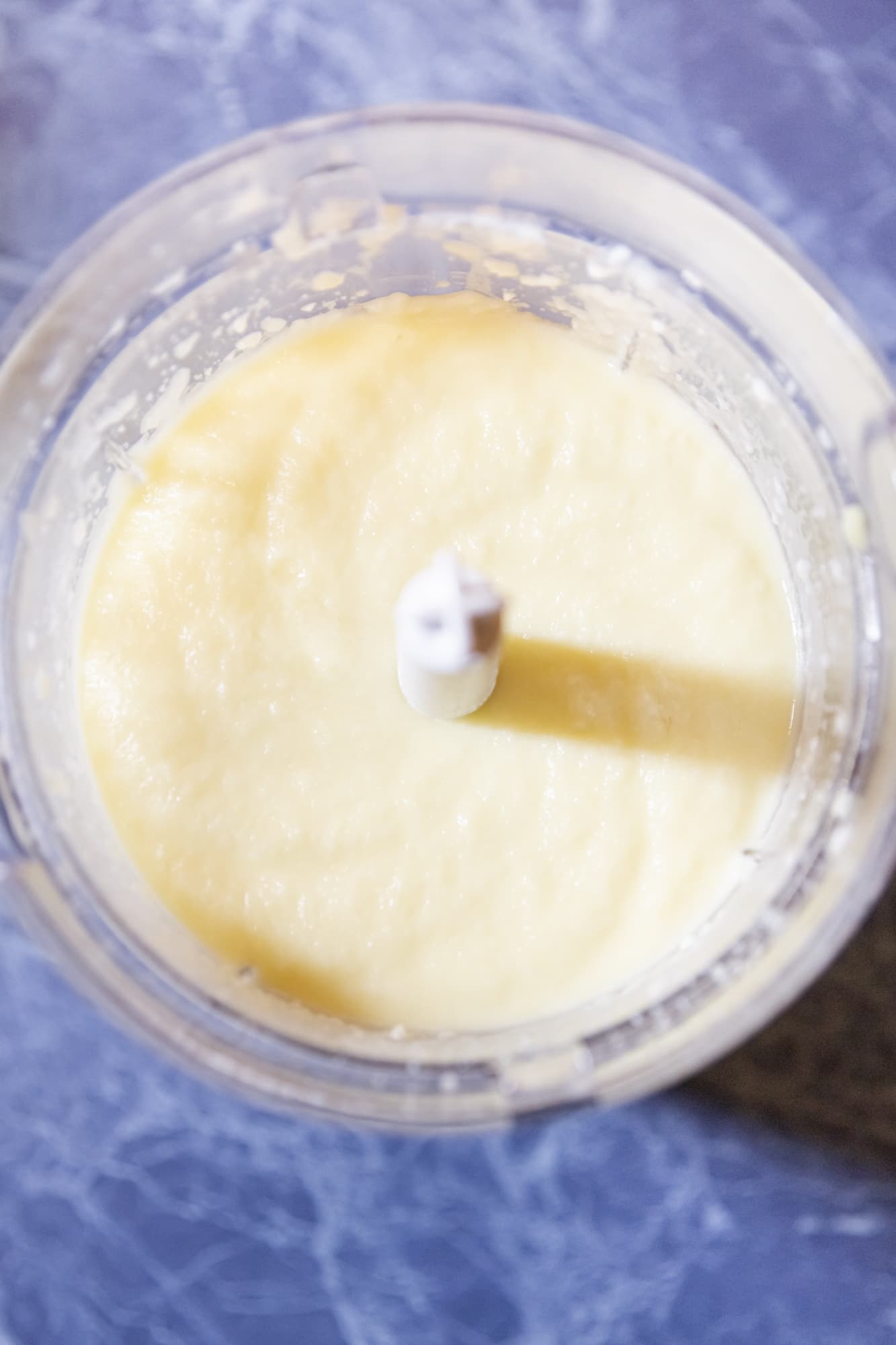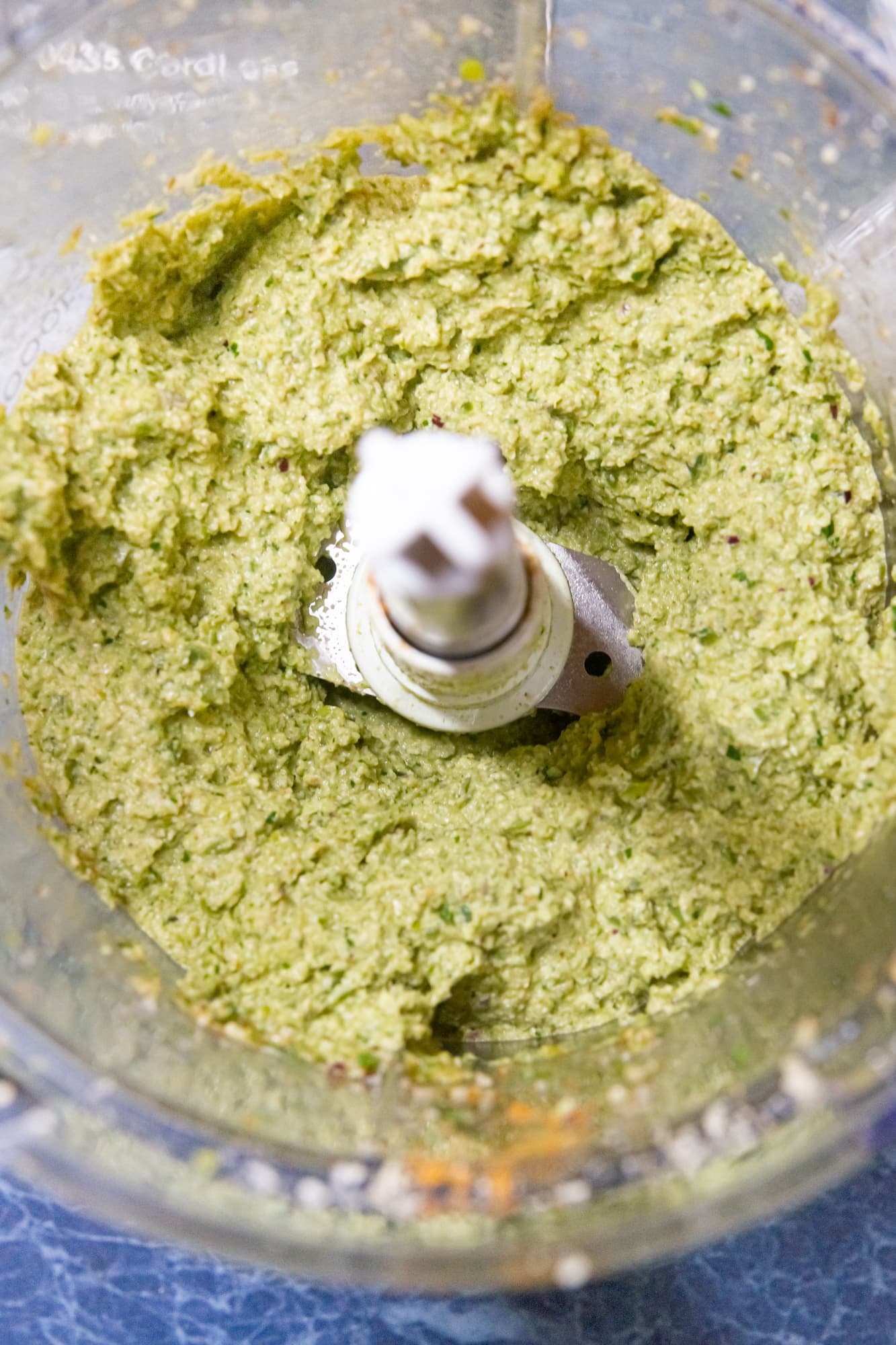 Включили блендер на 2-й скорости и обрабатывали продукты в общей сложности 1 минуту 40 секунд. Делали перерыв на 10 секунд, чтобы снять со стенок небольшое количество налипших продуктов.