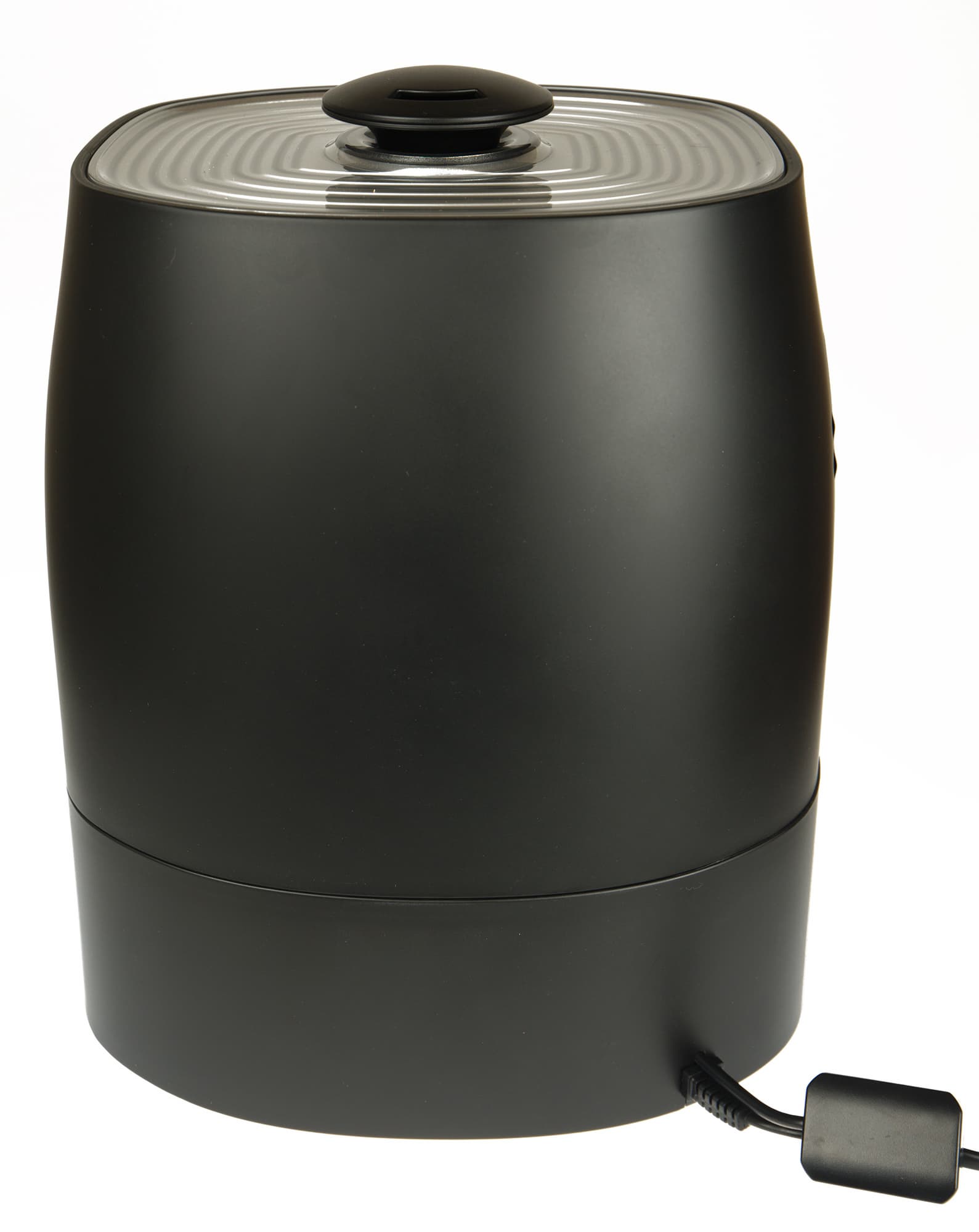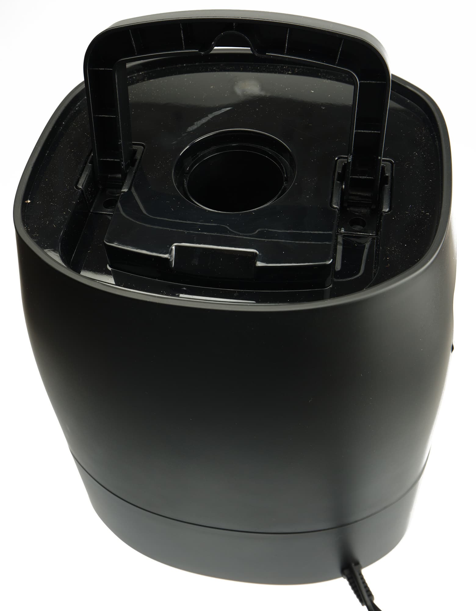 Оценить уровень воды в резервуаре оказалось крайне затруднительно. Подсветки нет, и даже если подойти вплотную, воды во мрачной тьме смотрового окошка почти не видно. И еще одно неудобство — бачок никак не закрепить на базе, то есть за ручку прибор не переместишь из комнаты в комнату.