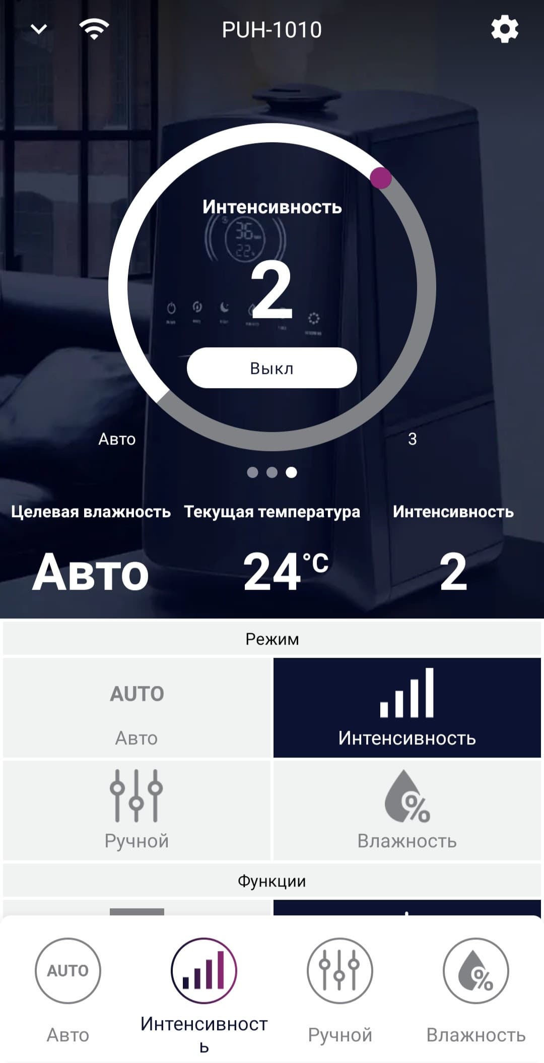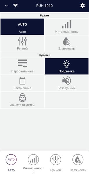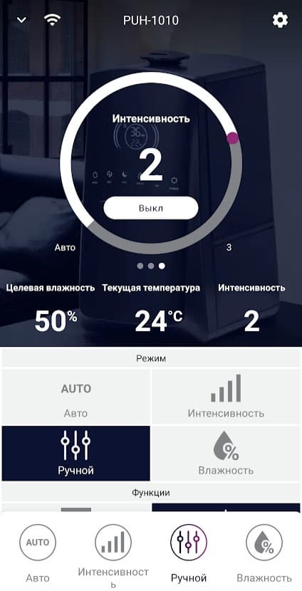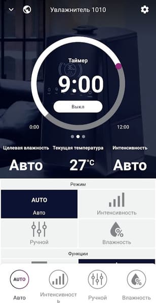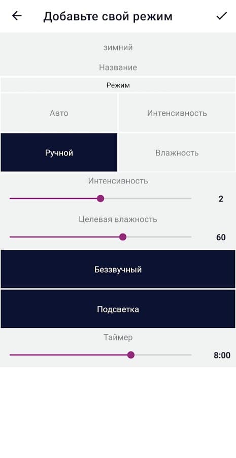 Можно создать и свой режим с любой комбинацией целевой влажности, интенсивности и времени работы.