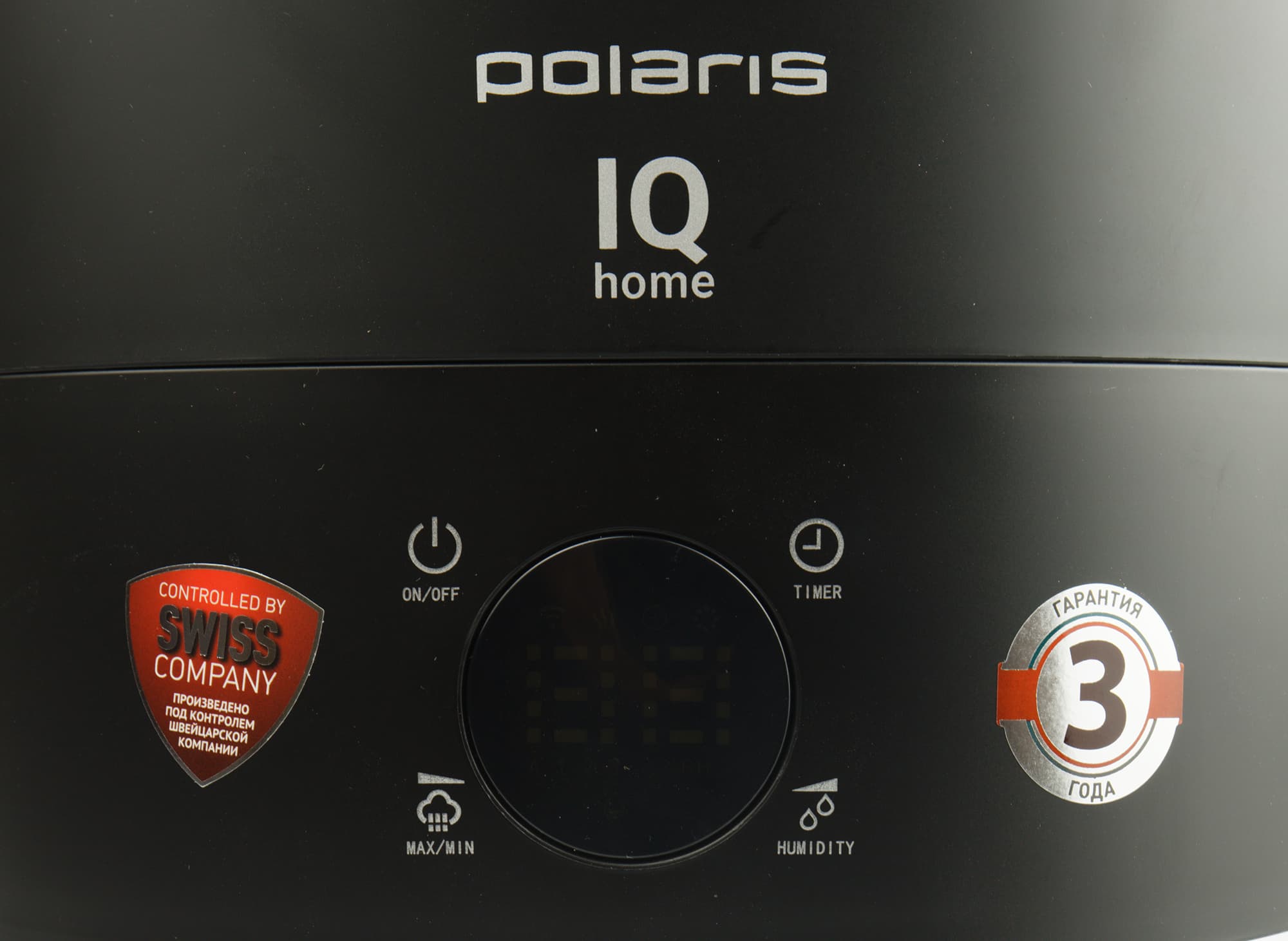 Панель управления состоит из дисплея и четырех сенсорных кнопок, обозначенных пиктограммами: питание, таймер, интенсивность подачи пара, уровень влажности.