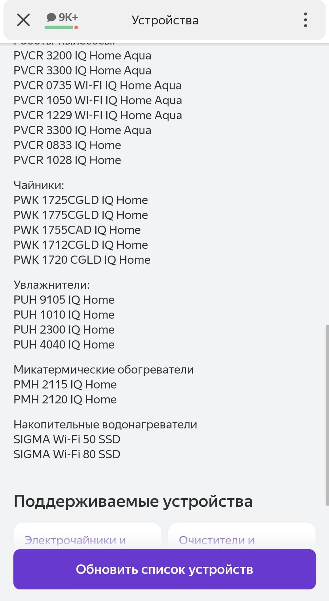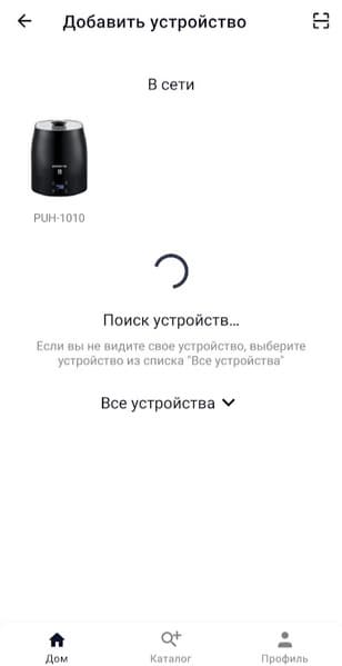 Для подключения голосового помощника мы вошли в аккаунт в «Яндексе», выбрали приложение «Устройства», и тапнули по кнопке «Подключить умное устройство». Затем нашли в списке приложений IQ Home. PUH 1010 не первый прибор от Polaris, который мы знакомим с Алисой, поэтому нам осталось просто обновить список устройств.