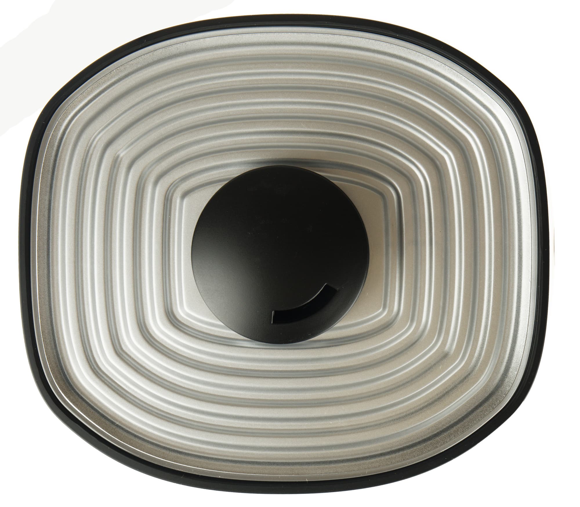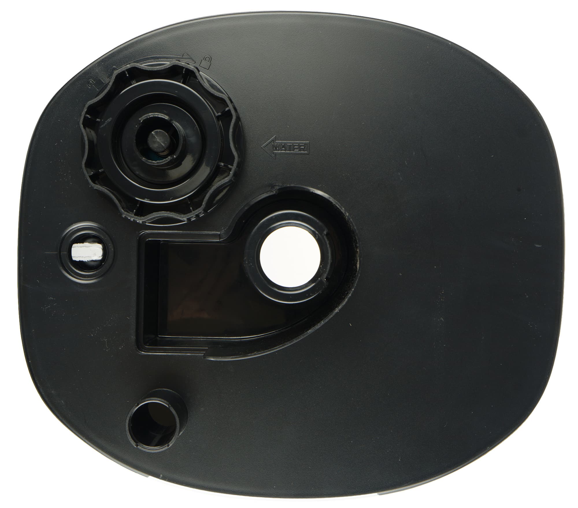 Крышка резервуара с вращающимся вокруг своей оси диффузором кажется ребристой, но поверх рифления есть гладкий слой прозрачного пластика.