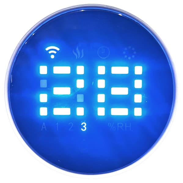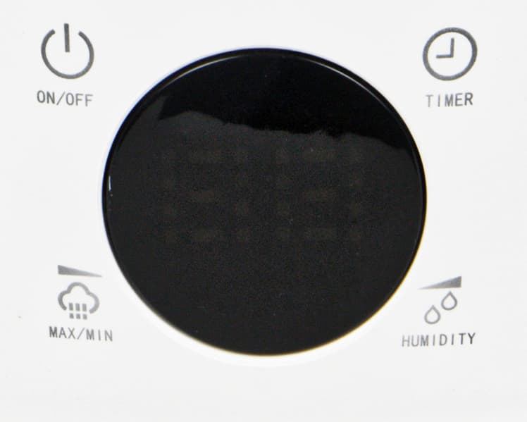 Включенный в сеть прибор показывает на дисплее текущую влажность. После сопряжения с мобильным приложением на дисплее появляется символ беспроводной сети. Под значением влажности отображается выбранный уровень мощности (цифры от единицы до тройки или буква «А», означающая работу в автоматическом режиме). Интенсивность увлажнения устанавливается последовательным нажатием кнопки Max/Min. Длинное нажатие на сенсор включает и выключает режим защиты от детей.