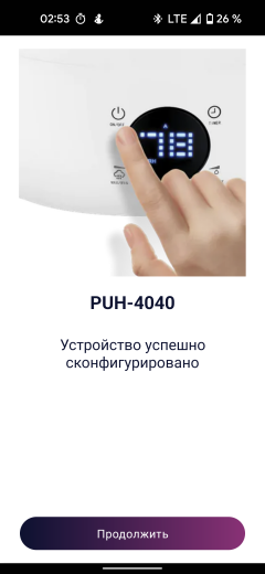 Процедура обновления встроенного ПО длится чуть больше минуты, после чего увлажнитель готов к работе.
