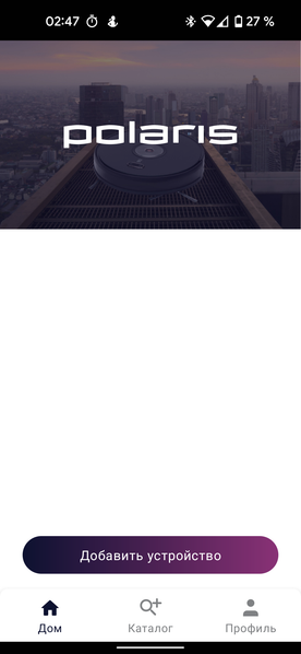 После регистрации (требуется подтвержденный адрес электронной почты или номер телефона) и успешного логина на главном экране приложения мы видим кнопку «Добавить устройство».