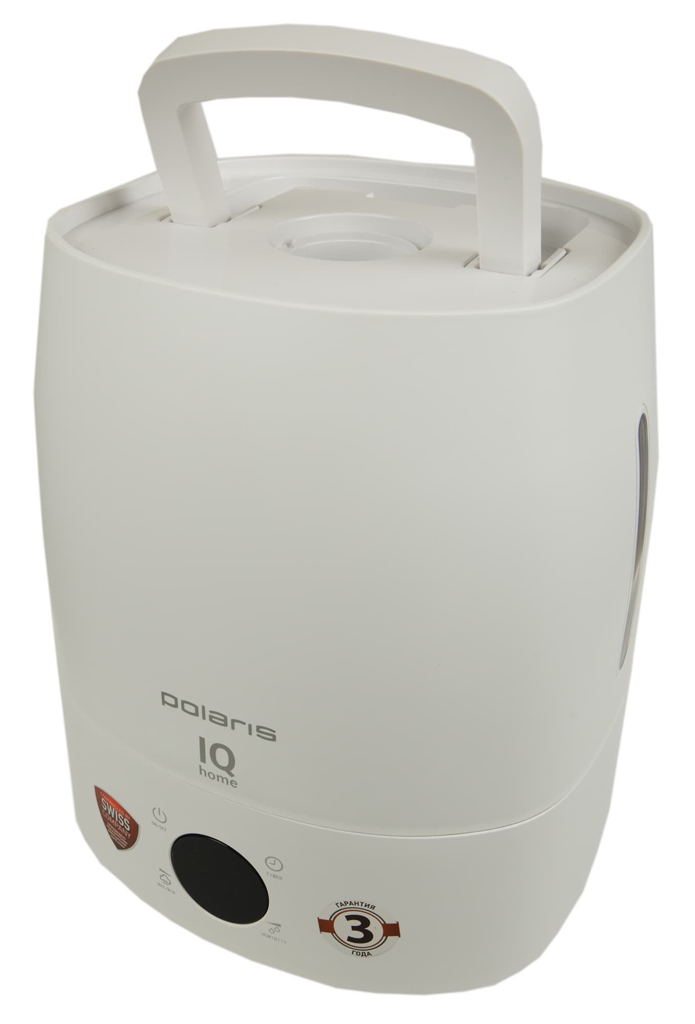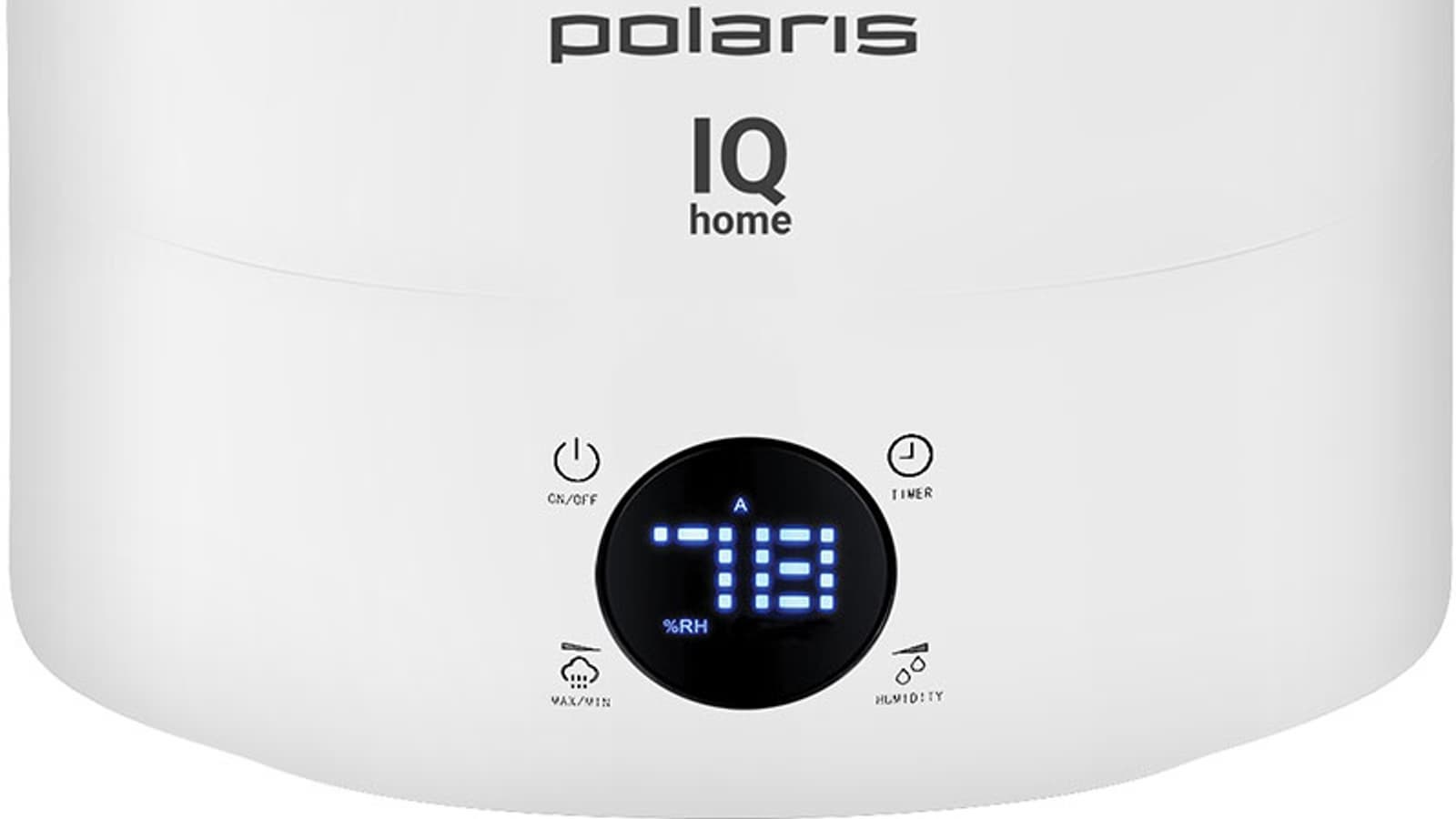 В PUH 4040 используется типовой дисплей, разработанный сразу для нескольких моделей увлажнителей Polaris, и некоторые его возможности в этой модели версии не используются. В частности, на включенном экране можно разглядеть символ функции «теплый пар», которой в нашем приборе нет.