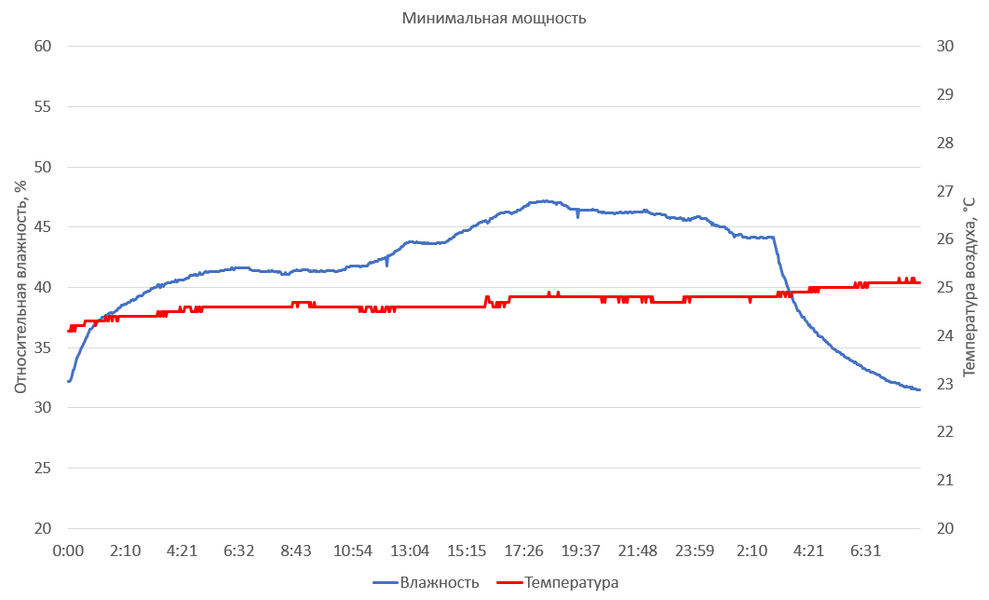 Наибольшую продолжительность работы прибор продемонстрировал, конечно, на самой маленькой мощности.