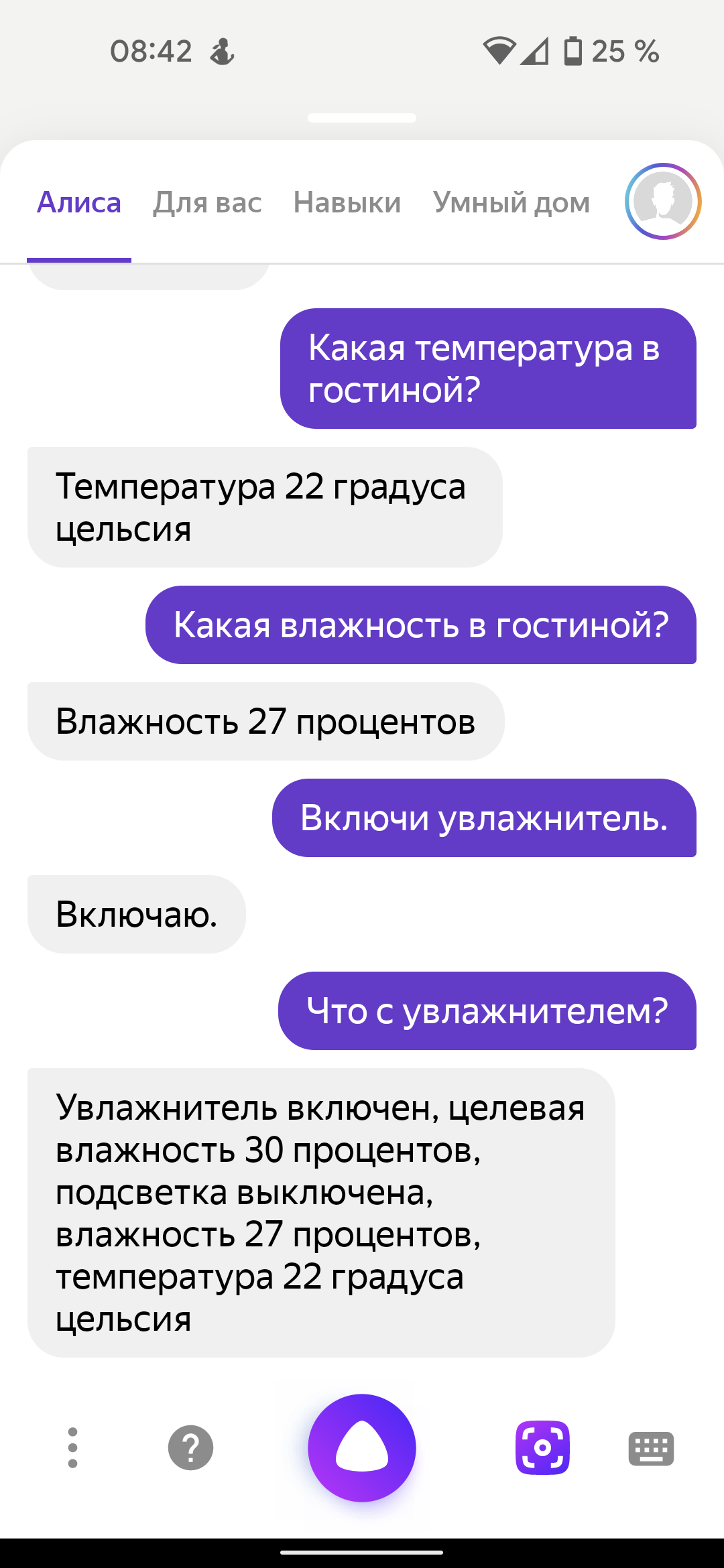 Изучив список команд, с Алисой можно вести вполне человеческий разговор о микроклимате в доме.