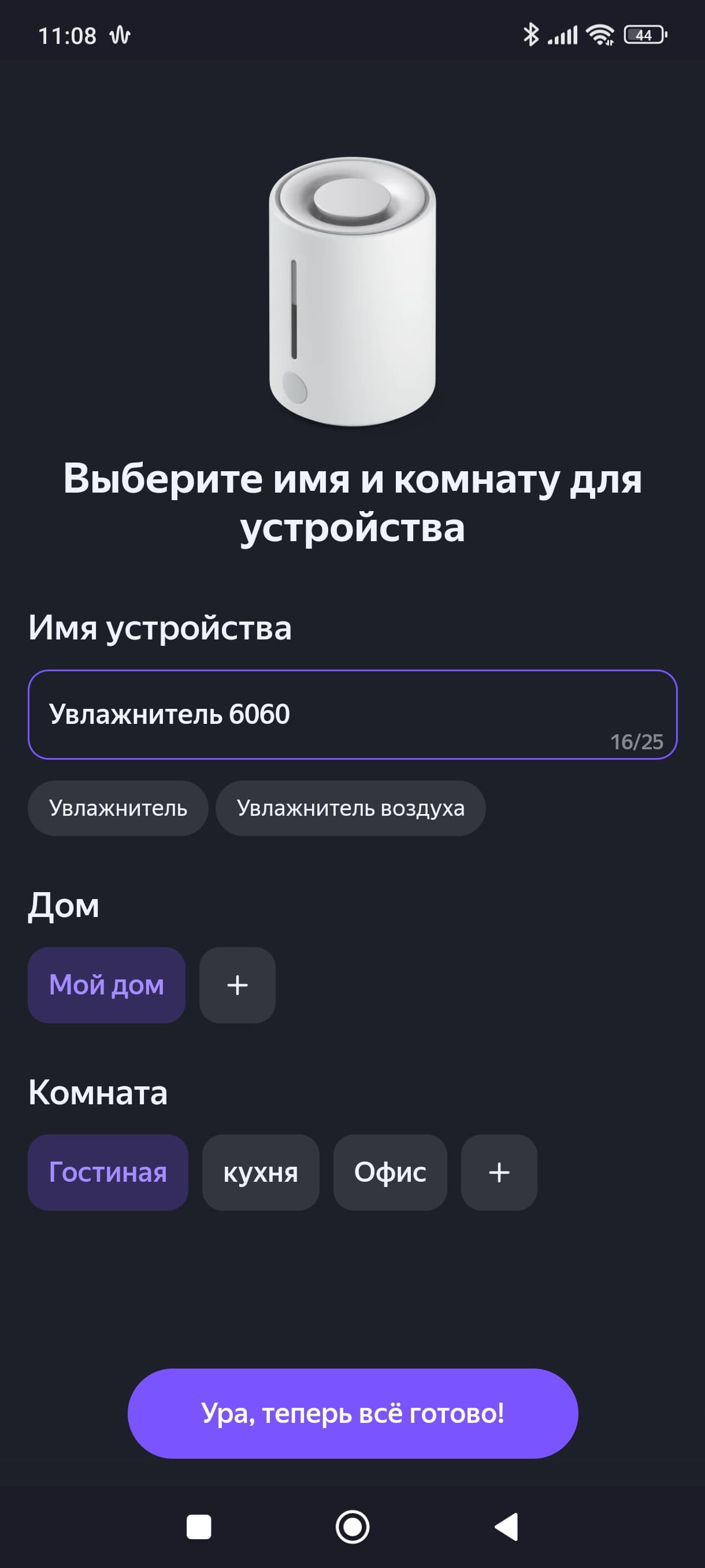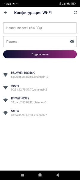 Классический метод подключения хорошо известен: устройство обнаруживается самостоятельно (либо его можно выбрать из списка), после чего пользователю нужно подключиться к Wi-Fi-сети увлажнителя и передать ему необходимые данные (пароль от роутера).
