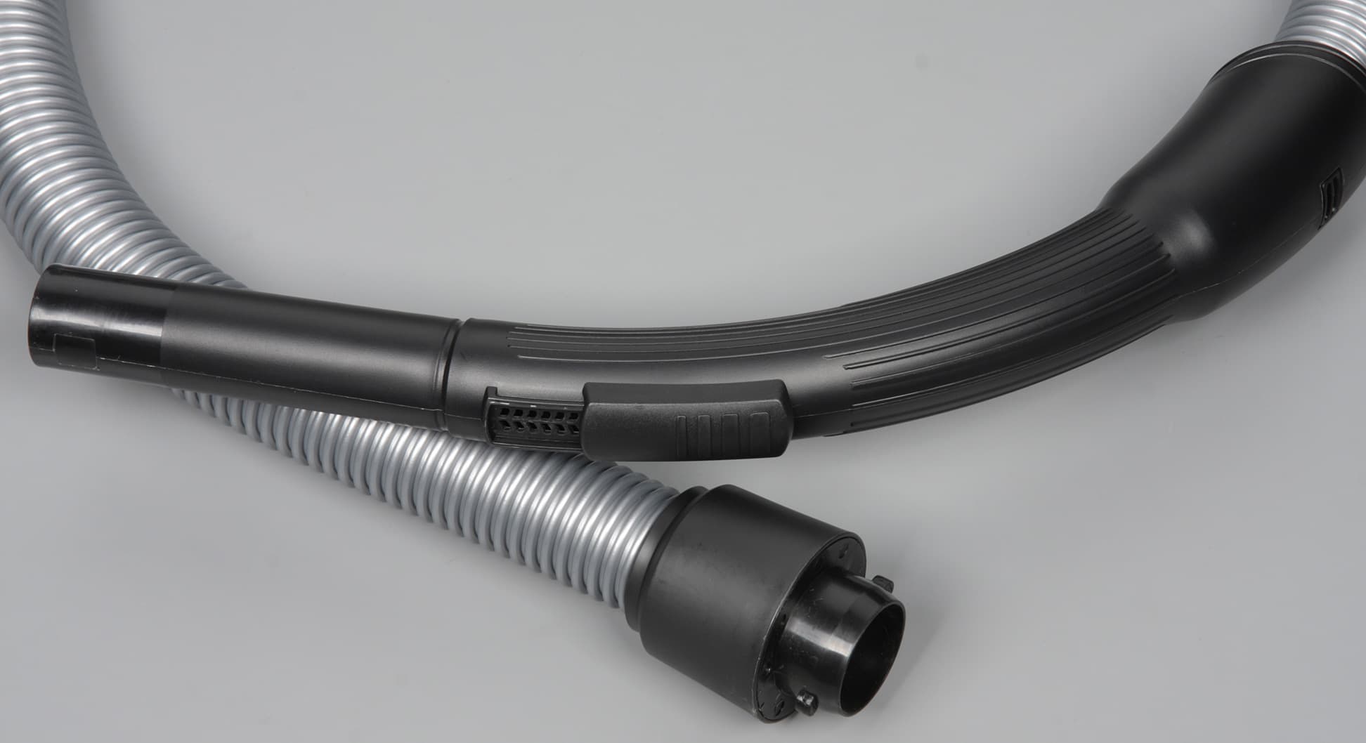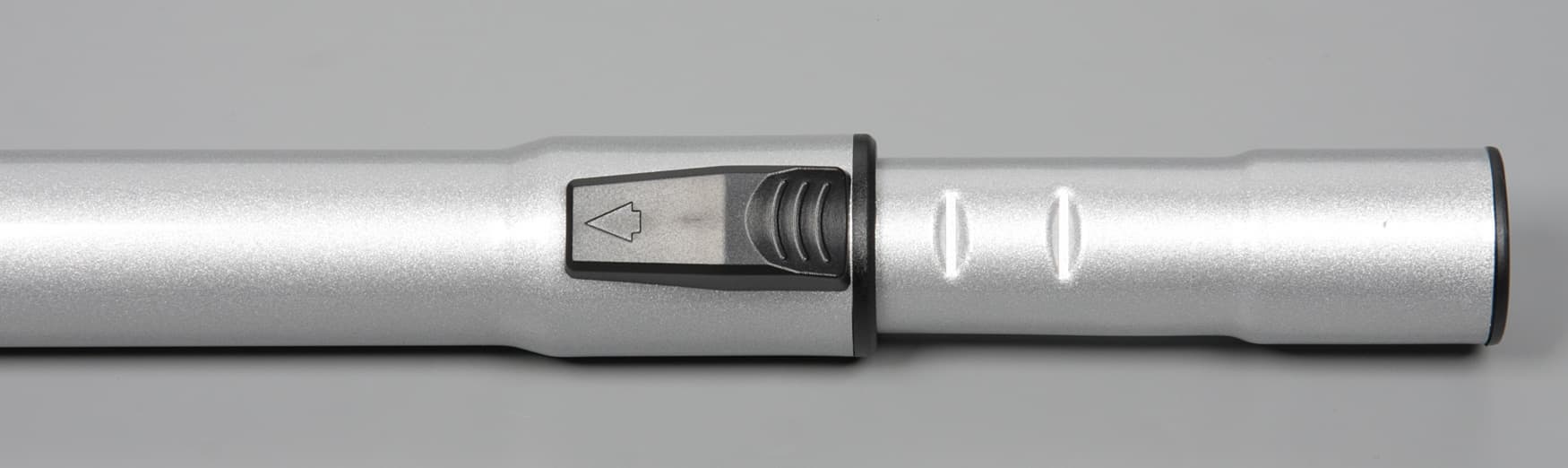 На рукоятке шланга есть продольные ребра, чтобы в руке не скользила, а также простой движковый клапан для снижения мощности всасывания. Телескопическая труба изготовлена из стали и имеет стойкое серебристое покрытие с снаружи с лаковым слоем. Она оснащена раздвижным механизмом с фиксацией. По торцам длина трубы составляет от 492 до 793 мм.