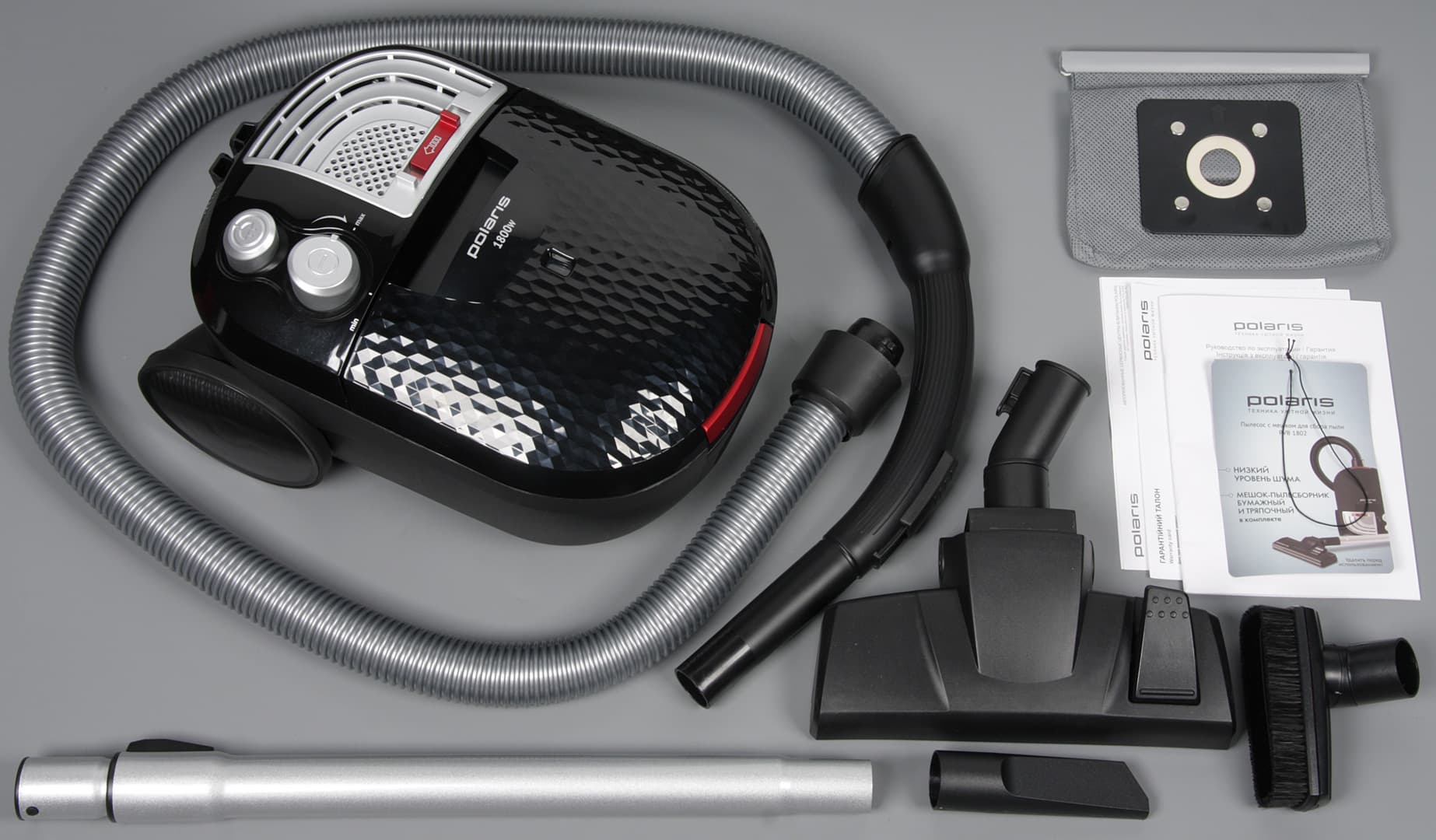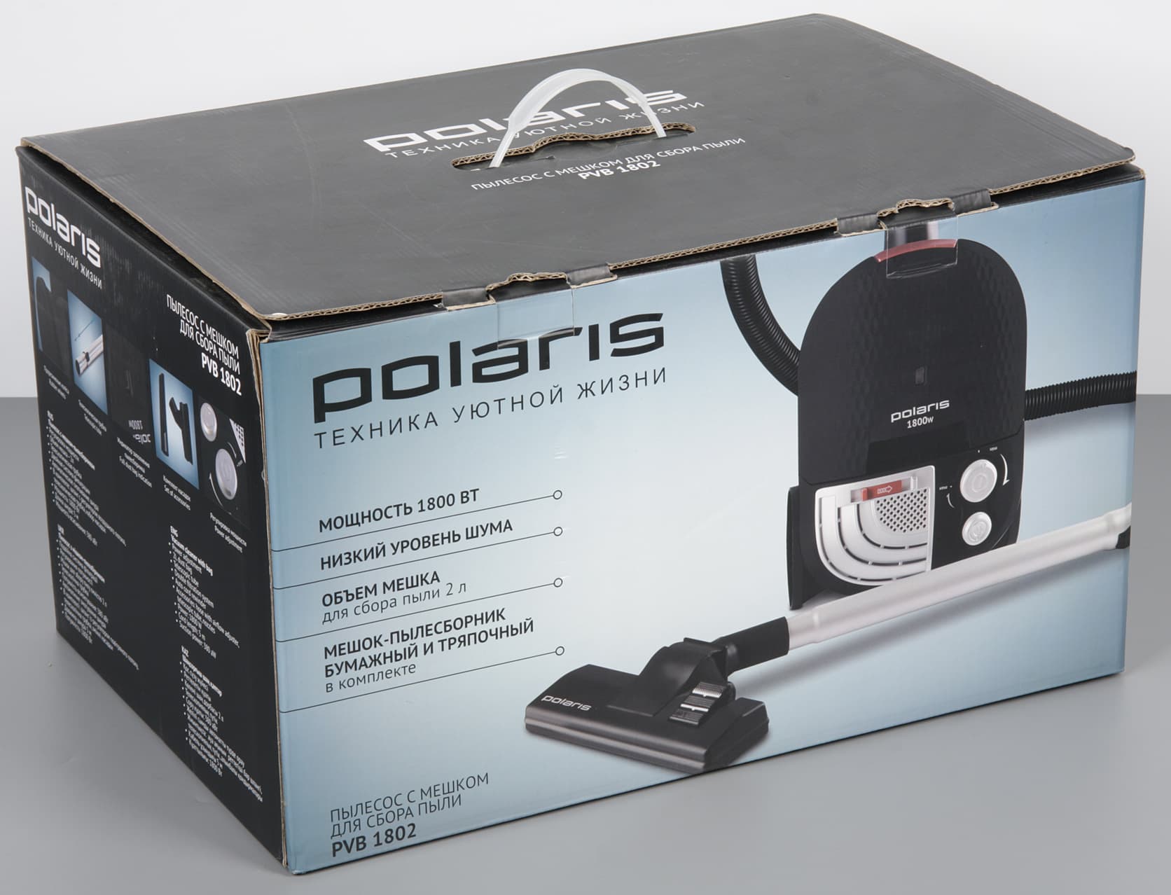 Polaris PVB 1802 является типичным недорогим пылесосом с мешком для сбора мусора. От совсем дешевых моделей его отличает регулировка мощности мотора и выпускной моющийся фильтр HEPA12. Пылесос удобно переносить в руках, так как вес у него небольшой, а на корпусе есть две ручки. Несмотря на высокую мощность, работает пылесос относительно тихо. Далее в списках перечислим неупомянутые достоинства и недостатки.