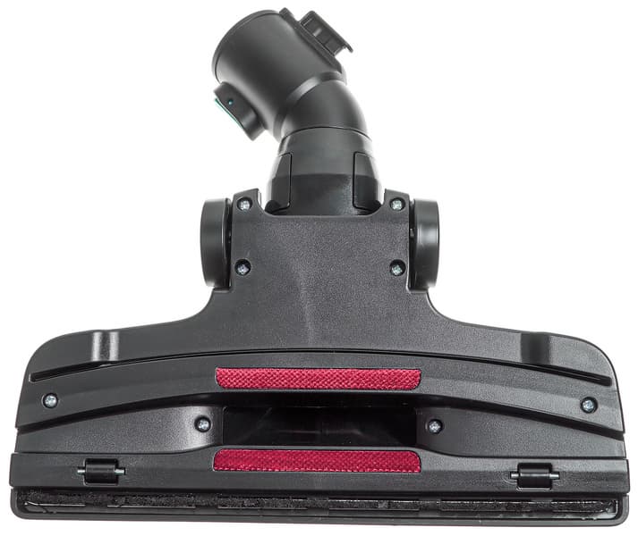 У системы подключения шланга также нестандартная конструкция: он фиксируется в моторном отсеке двумя защелками, управляемыми кнопкой. Телескопическая трубка и ручные насадки также закреплены с помощью защелок.