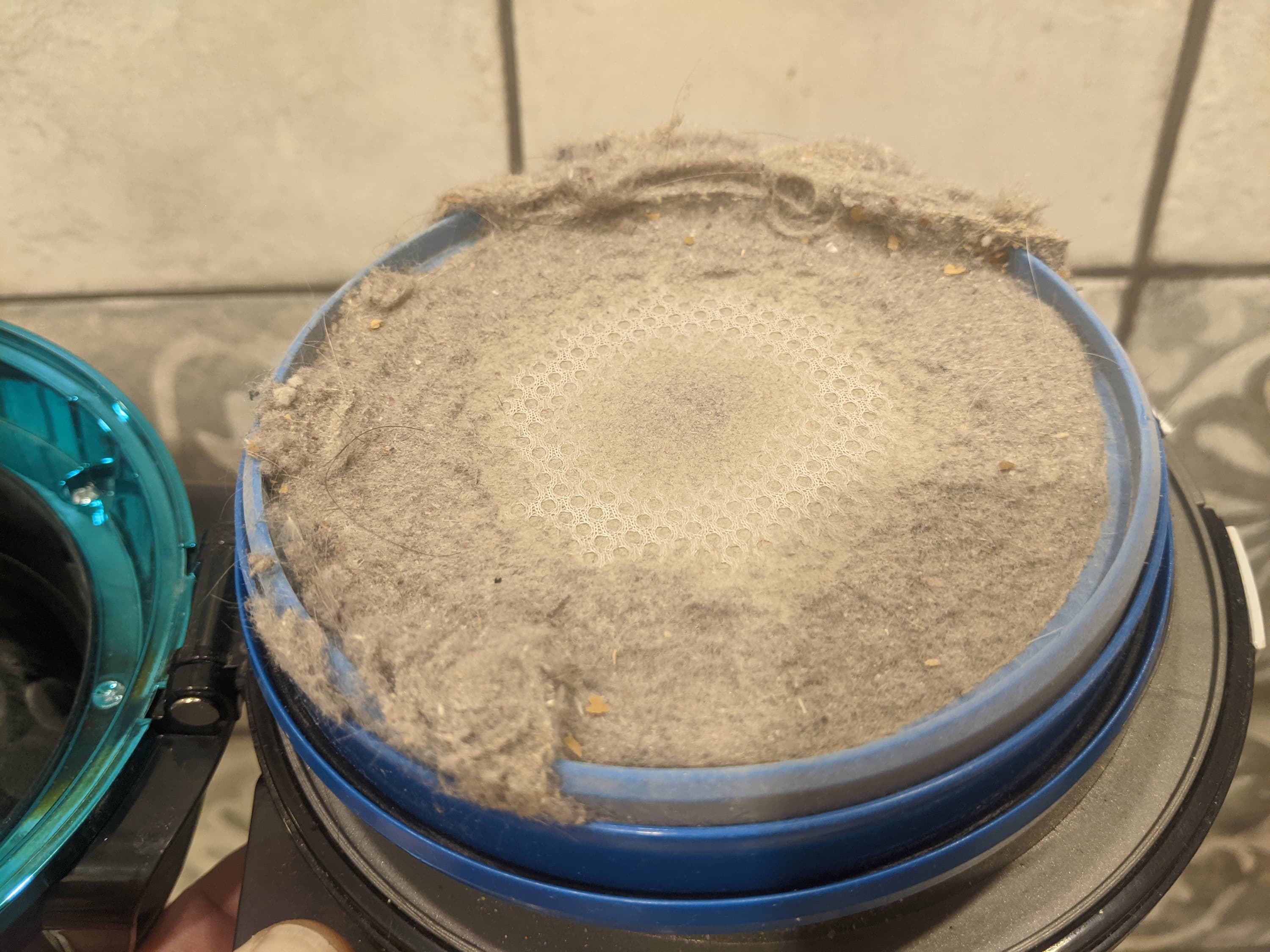 Мелкие частицы и пыль воздушной струей через центральную часть циклона поднимаются наверх, к фильтру тонкой очистки. Это большая «таблетка» из нескольких слоев нетканого материала с резиновым уплотнительным кольцом по периметру.