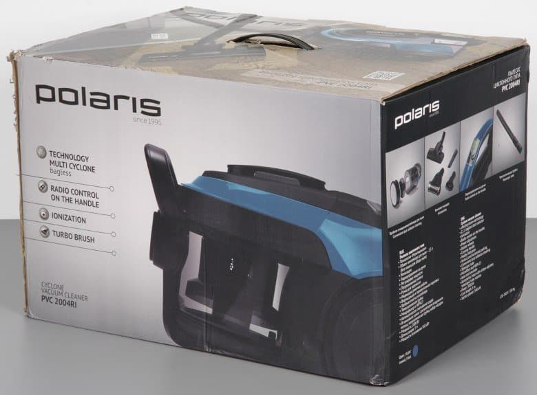 Коробка оснащена пластиковой ручкой. Оформление коробки красочное и информативное, на плоскостях рассказано об основных достоинствах и особенностях агрегата, приведены некоторые характеристики. Тексты на русском и на английском языках. Для упаковки используются пластиковые пакеты, а также элементы из гофркартона и папье-маше. Комплектация хорошая, кроме обычных для напольного пылесоса гибкого шланга и телескопической трубы есть еще четыре насадки разного вида.