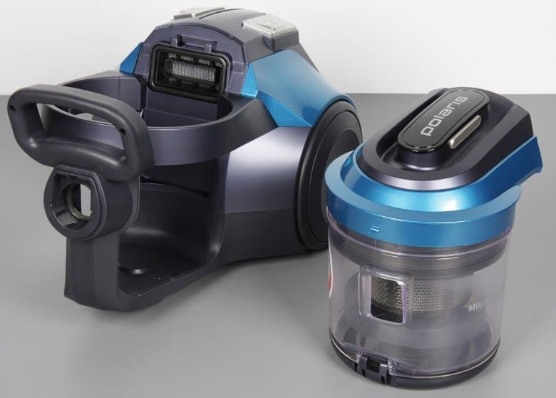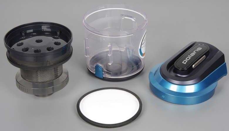 Система фильтрации трехступенчатая. Цилиндрический корпус пылесборника формирует большой циклон первой ступени, на которой отделяется большой и тяжелый мусор, а легкий и крупный мусор, типа волокон и шерсти задерживается сеткой из отверстий. Далее десять мелких циклонов сепарируют мельчайшую пыль и воздух, пыль сваливается в изолированную камеру в центре контейнера пылесборника, а воздух через предмоторный фильтр идет к вентилятору. Выходит воздух через решетку сзади, за которой установлен фильтр HEPA13.