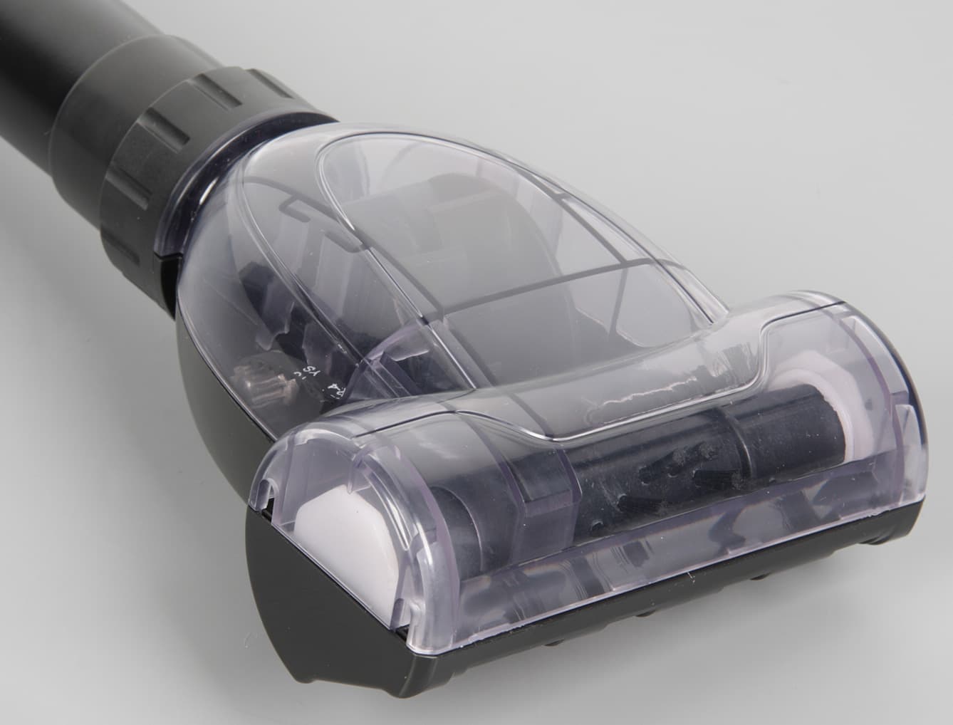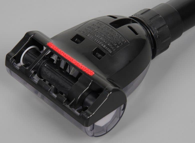 Во вращение щетка приводится при помощи небольшой турбинки, которую закручивает всасываемый воздух. Для вращения турбинки используется проходящий через щетку воздух, обособленного забора именно для турбинки нет, поэтому мусор может помешать работе привода. Насадка легко разбирается, что позволяет проводить инспекцию ее состояния и очистку.