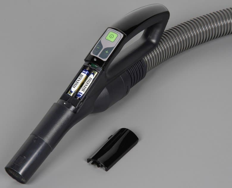 Кнопка питания на рукоятке включает и выключает мотор пылесоса. Первое включение с рукоятки устанавливает режим низкой мощности, далее текущий уровень мощности запоминается до отключения пылесоса от сети. Кнопки «+» и «−» переключают мощность с низкой на высокую и наоборот. Педаль на корпусе включает мотор пылесоса сразу на высокую мощность и выключает его. Вместо традиционного проводного управления используется передача сигналов по радиоканалу с автономным питанием передатчика. Соответственно, в рукоятке есть батарейный отсек, куда вставляются два элемента питания типа ААА. Такое управление надежнее и долговечнее проводного, так как при использовании проводов в шлангах они подвержены интенсивному механическому воздействию, вследствие чего часто переламываются, и управление с рукоятки перестает работать.
