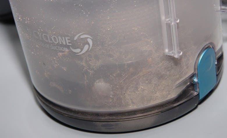 Преимущественный состав собранного мусора — это грязь с обуви (песок, глина, пыль), ворс с ковролина и ковриков, волосы и т. д. При работе пылесоса внутренняя поверхность пылесборника быстро царапается и покрывается тонким слоем пыли, поэтому, сколько в нем собралось мусора видно плохо.