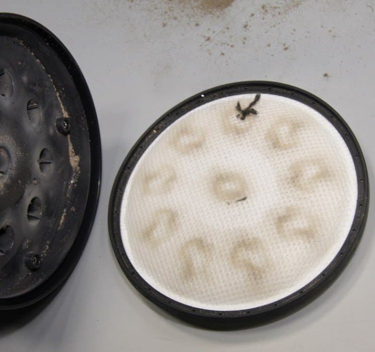 А выпускной фильтр HEPA с виду остался чистым. На вал турбощетки намоталось довольно много волос, ниток и т. д. Один раз щетка даже остановилась из-за намотавшегося на вал щетки и на турбину. Пришлось потратить некоторое время на снятие всего этого, в том числе с помощью ножниц.