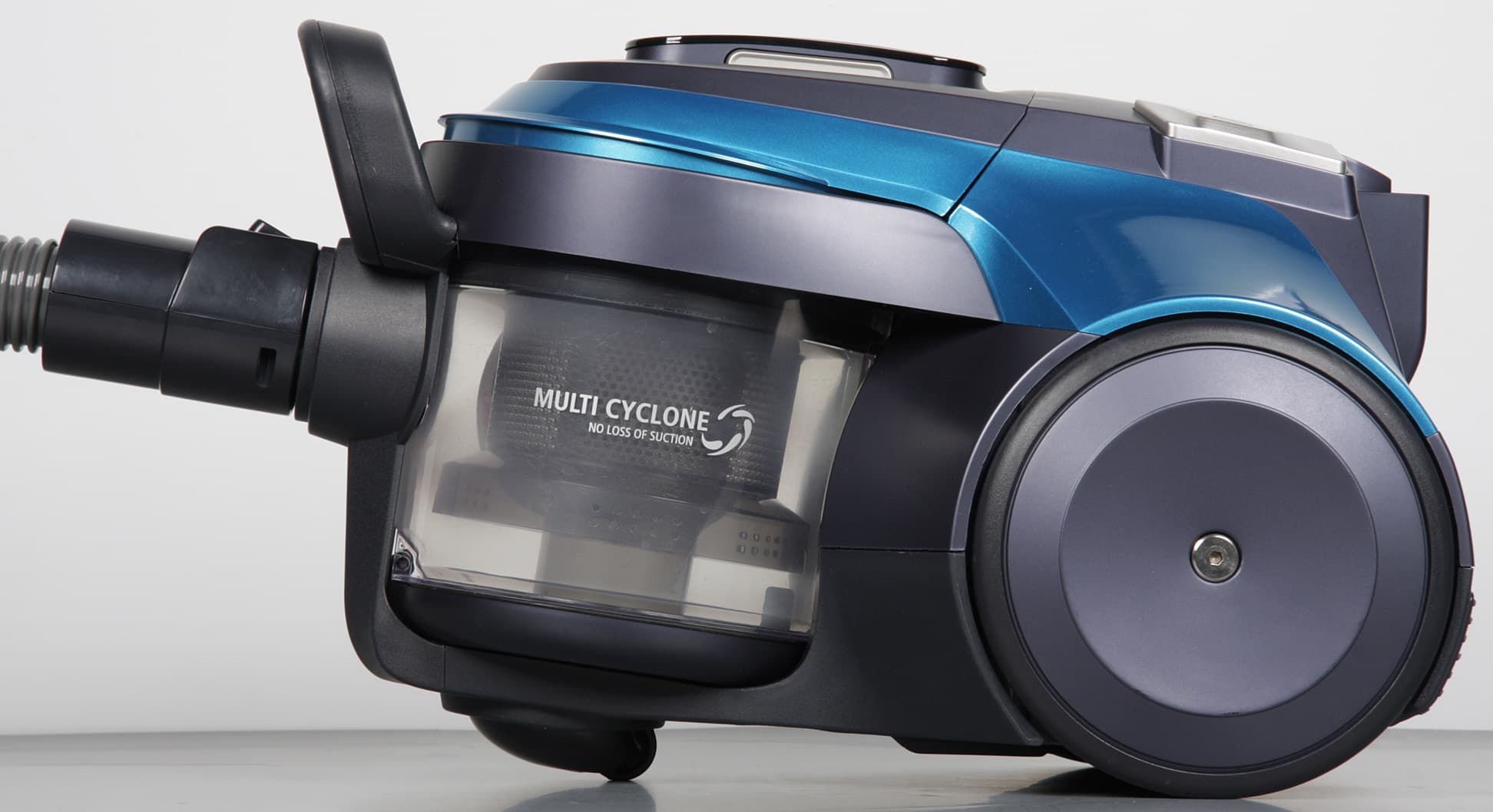 Пылесос отличает хорошая эффективность циклонного фильтра. Также стоит отметить удобное управление на рукоятке и ухватистую ручку-скобу для переноски пылесоса. Турбощетка хорошо справляется с тщательной очисткой пола с ковровыми покрытиями и предметов с мягкой обивкой. Правда, использование этой насадки осложняет отсутствие шарнира или поворотного кожуха. Далее списками.