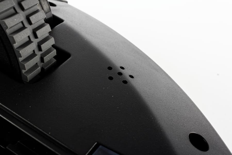 Выключатель устройства герметично закрыт колпачком из силикона, его место за левым ведущим колесом. За правым же находится решетка динамика.