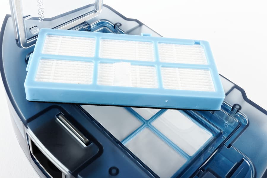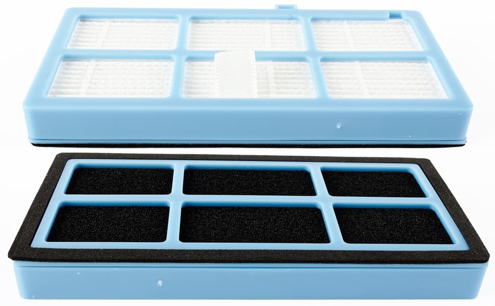 Внутри пылесборника располагается фильтр тонкой очистки, состоящий из двух элементов: предварительного поролонового и основного HEPA-фильтра.