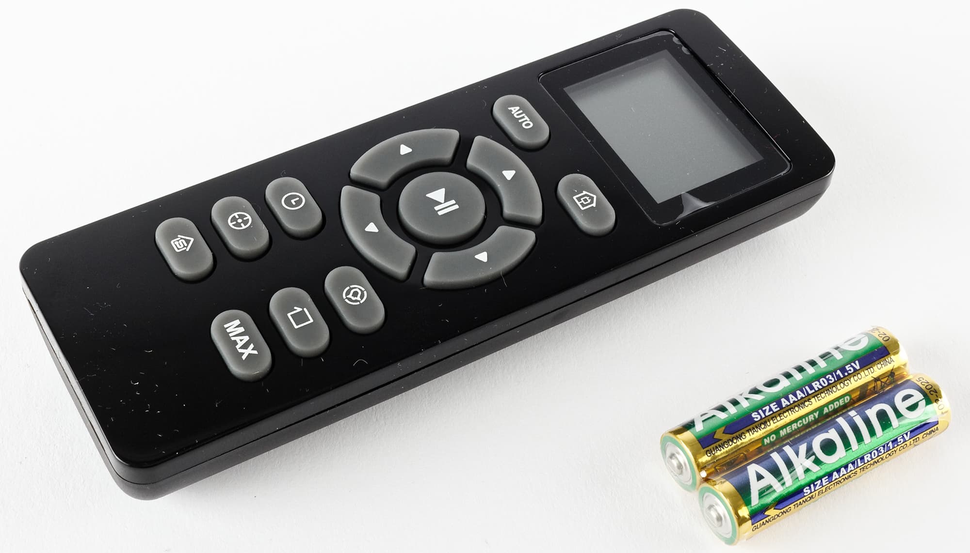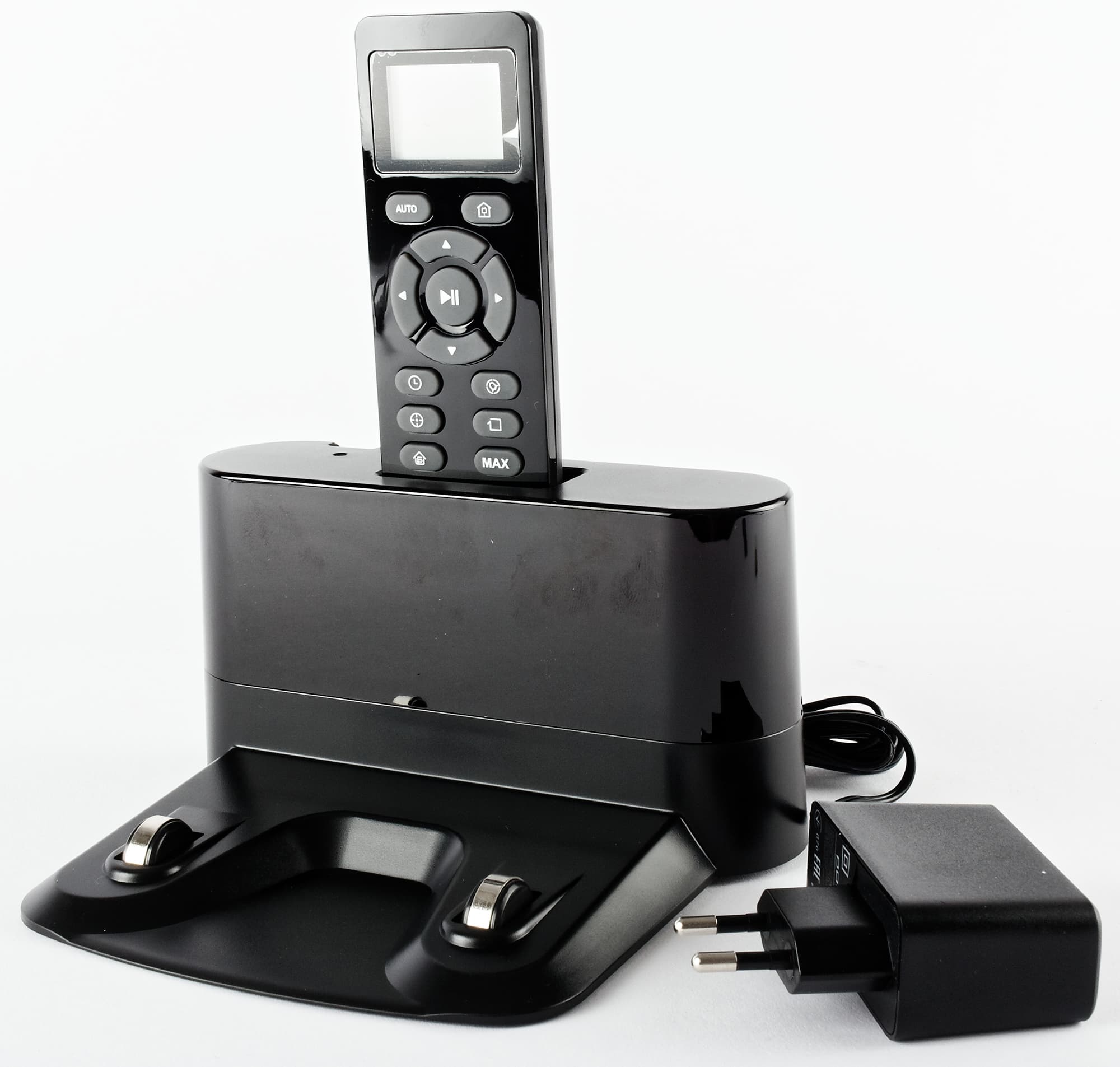 Пульт устройства имеет тринадцать кнопок и жидкокристаллический дисплей, на котором отображается время в двенадцатичасовом формате и текущий режим работы. Если пылесос запрограммирован на автоматическую уборку по расписанию, на экране появляется соответствующий значок.