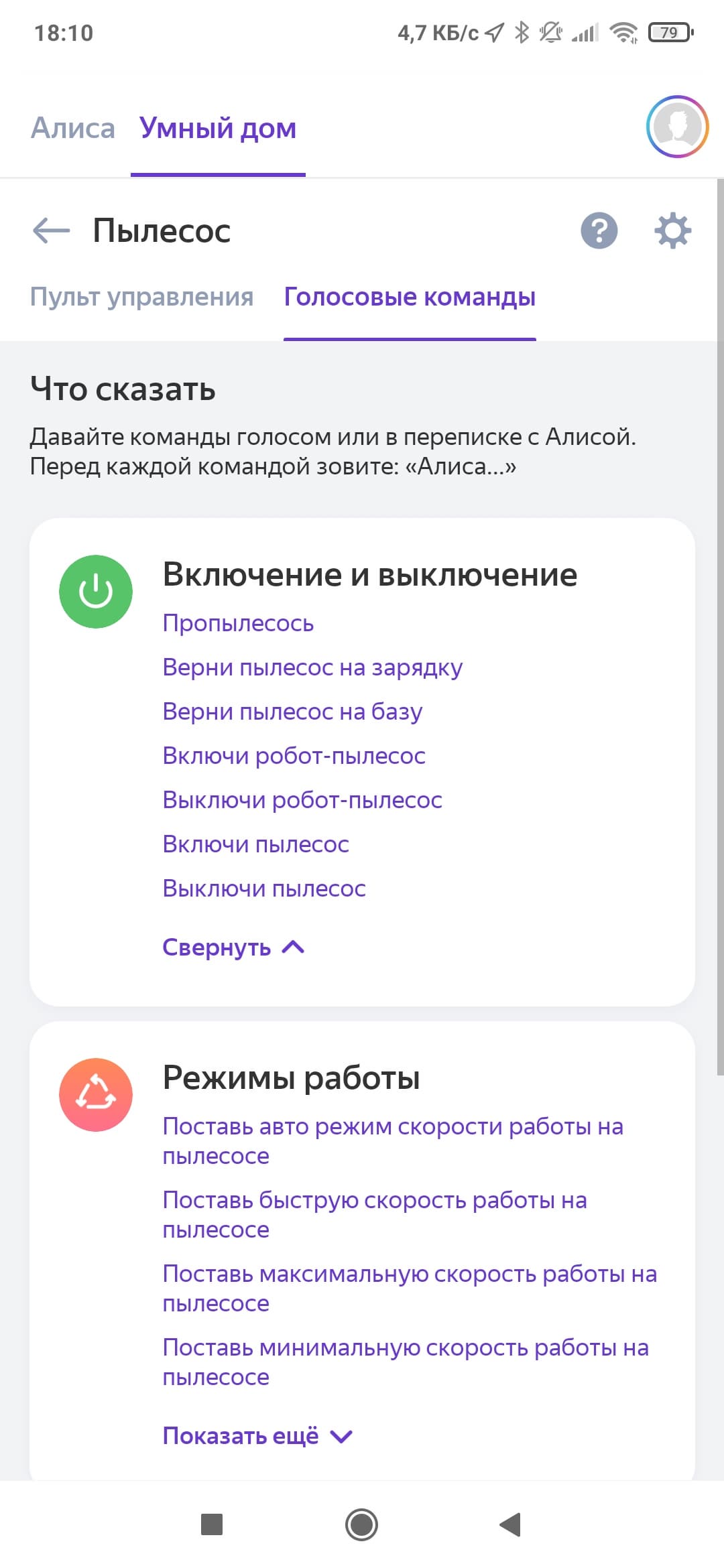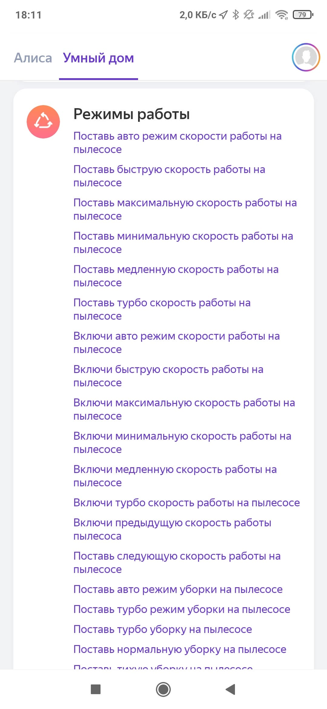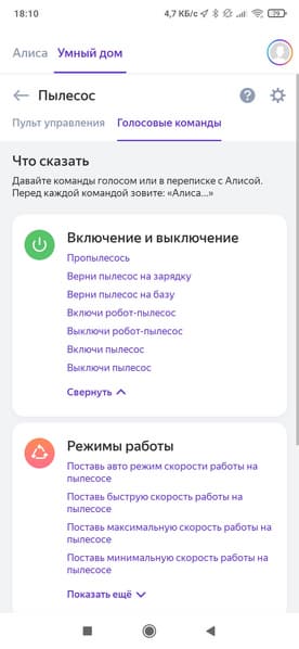 Выяснилось, что пылесос без проблем подружился с Алисой и с ходу начал понимать отданные ему голосовые команды.