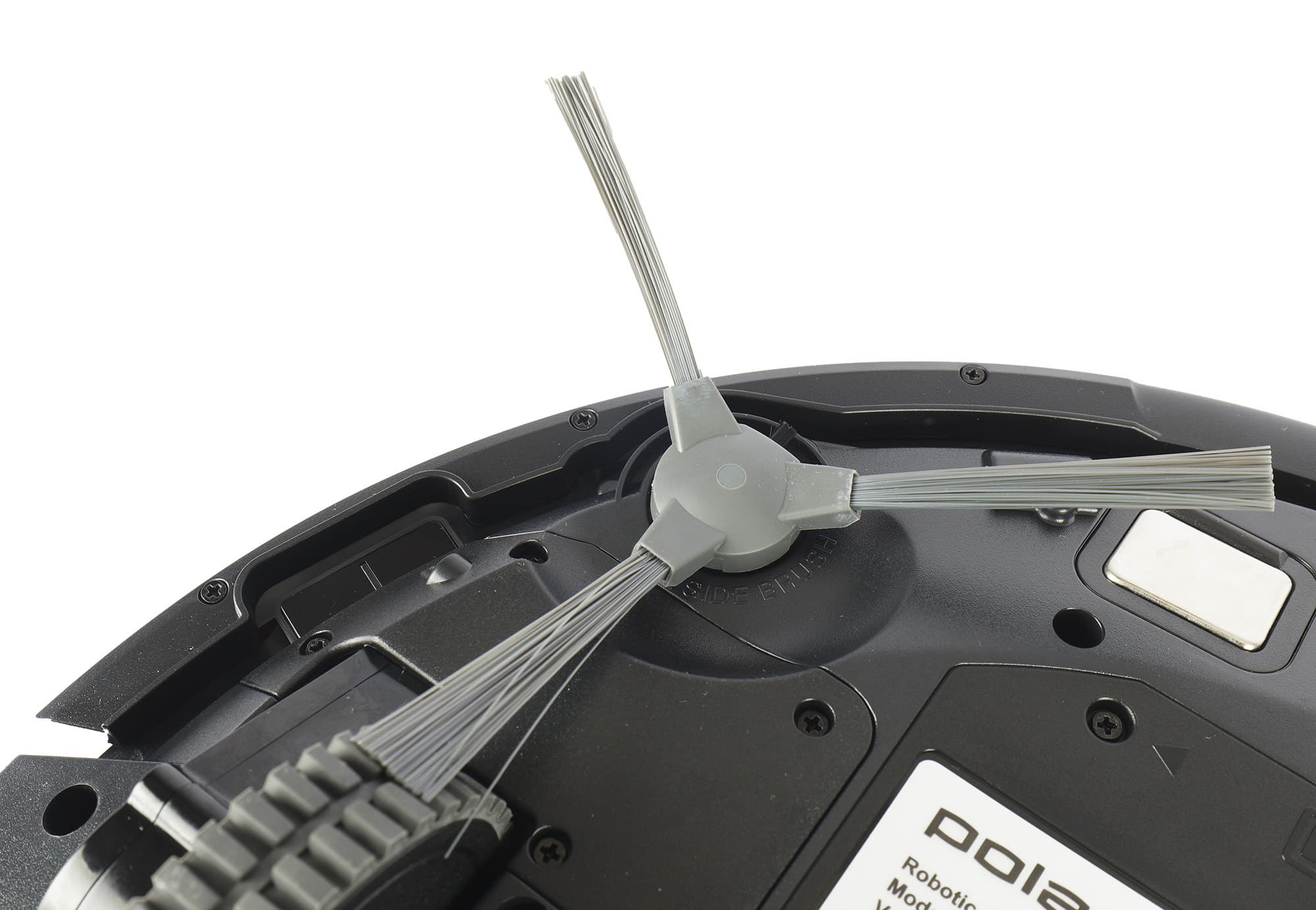 Съемные боковые щетки в нашем случае не делятся на «левые» и «правые», устанавливать их можно произвольно. Для установки щеток на корпус прибора, а также для их демонтажа не нужны специальные инструменты: щетки защелкиваются на своем месте при легком нажатии.