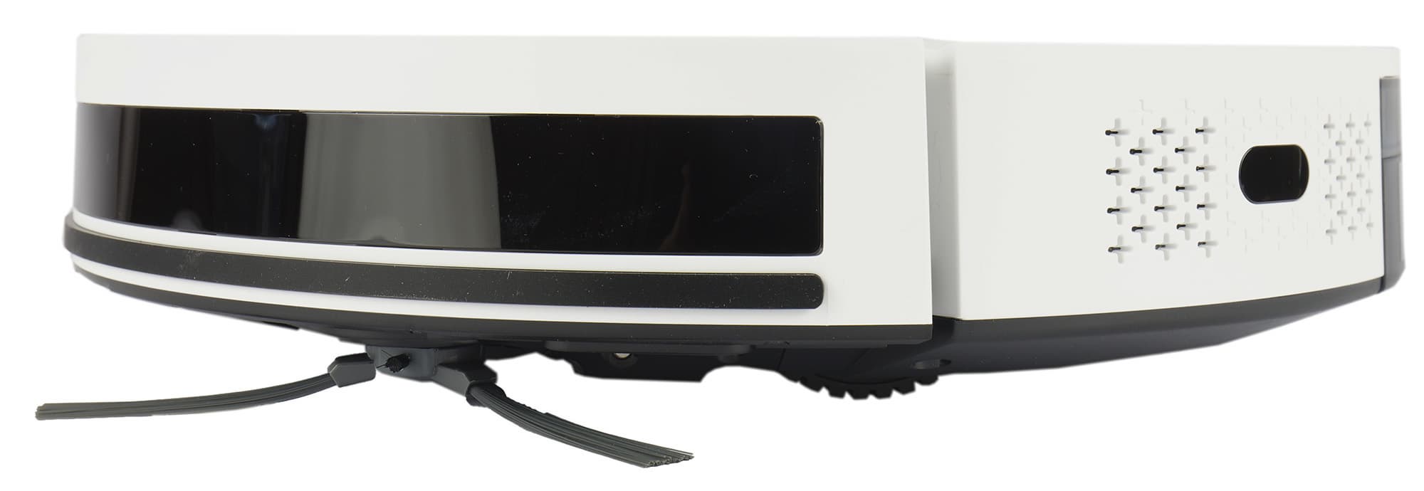 Также в передней части корпуса можно увидеть гнезда для крепления боковых щеток, а по центру и по бокам — окошки оптических (инфракрасных) датчиков поверхности.