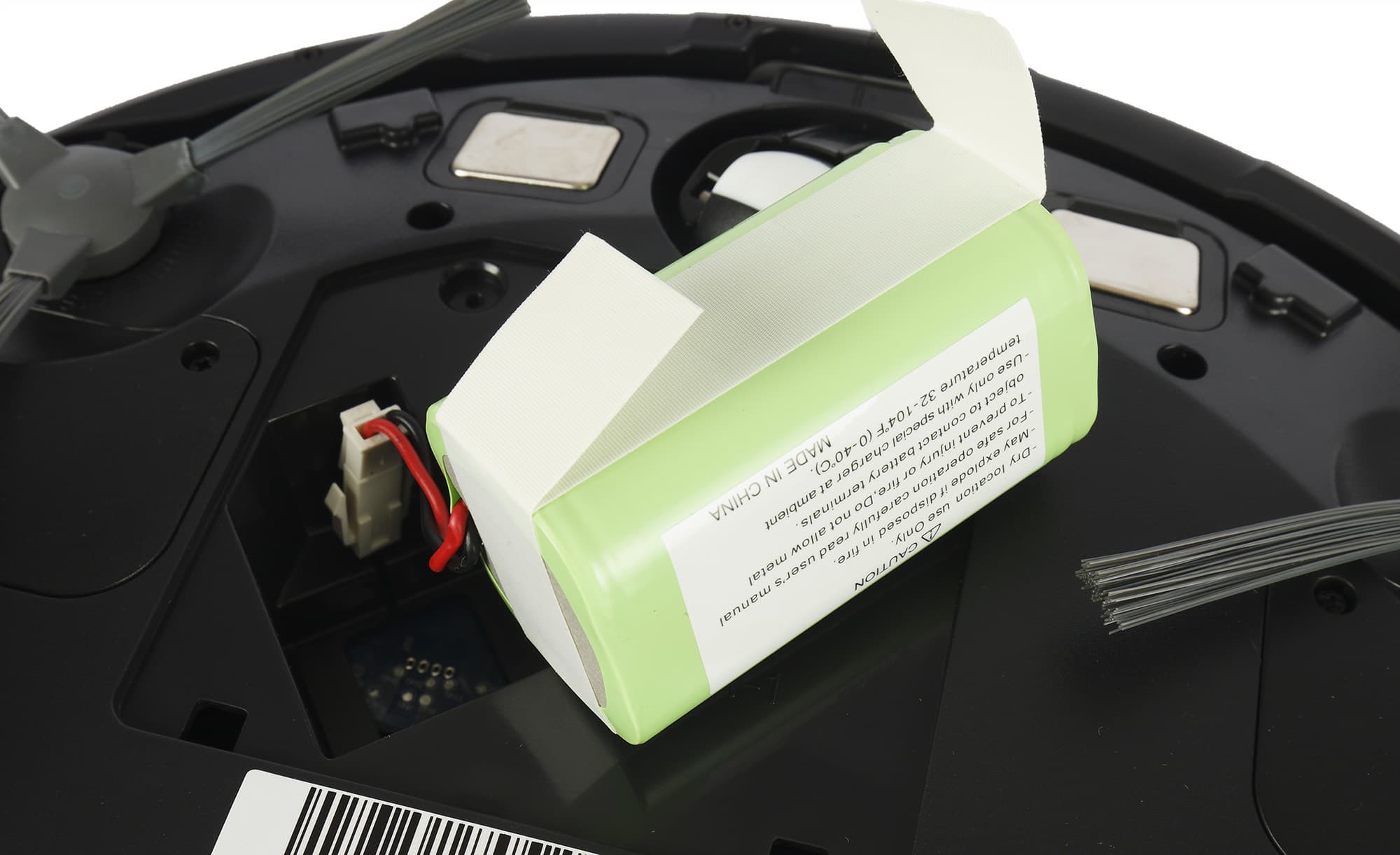 Рядом с контактами для зарядки на базе находится крышка аккумуляторного отсека, закрывающаяся на два винта. Блок питания представляет собой сборку из четырех аккумуляторов форм-фактора 18650. Номинальная емкость аккумулятора (Typical Capacity) составляет 3200 мА·ч.