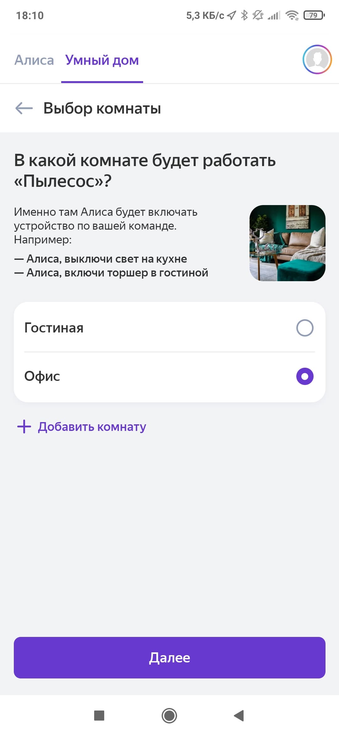 В ходе первоначальной настройки пылесосу можно назначить свою комнату (либо другое помещение).