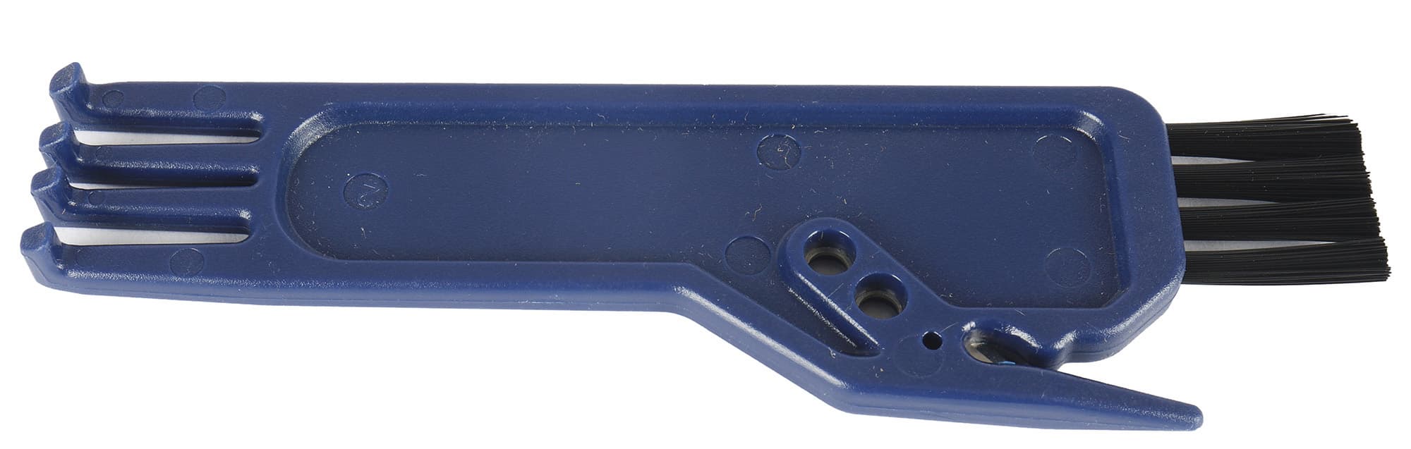 Щетка-нож для очистки, входящая в комплект, оказалась вполне стандартной: с ее помощью можно очистить пылесос от грязи и налипшей пыли, а также срезать волосы или нитки, которые имеют привычку наматываться на щетку.