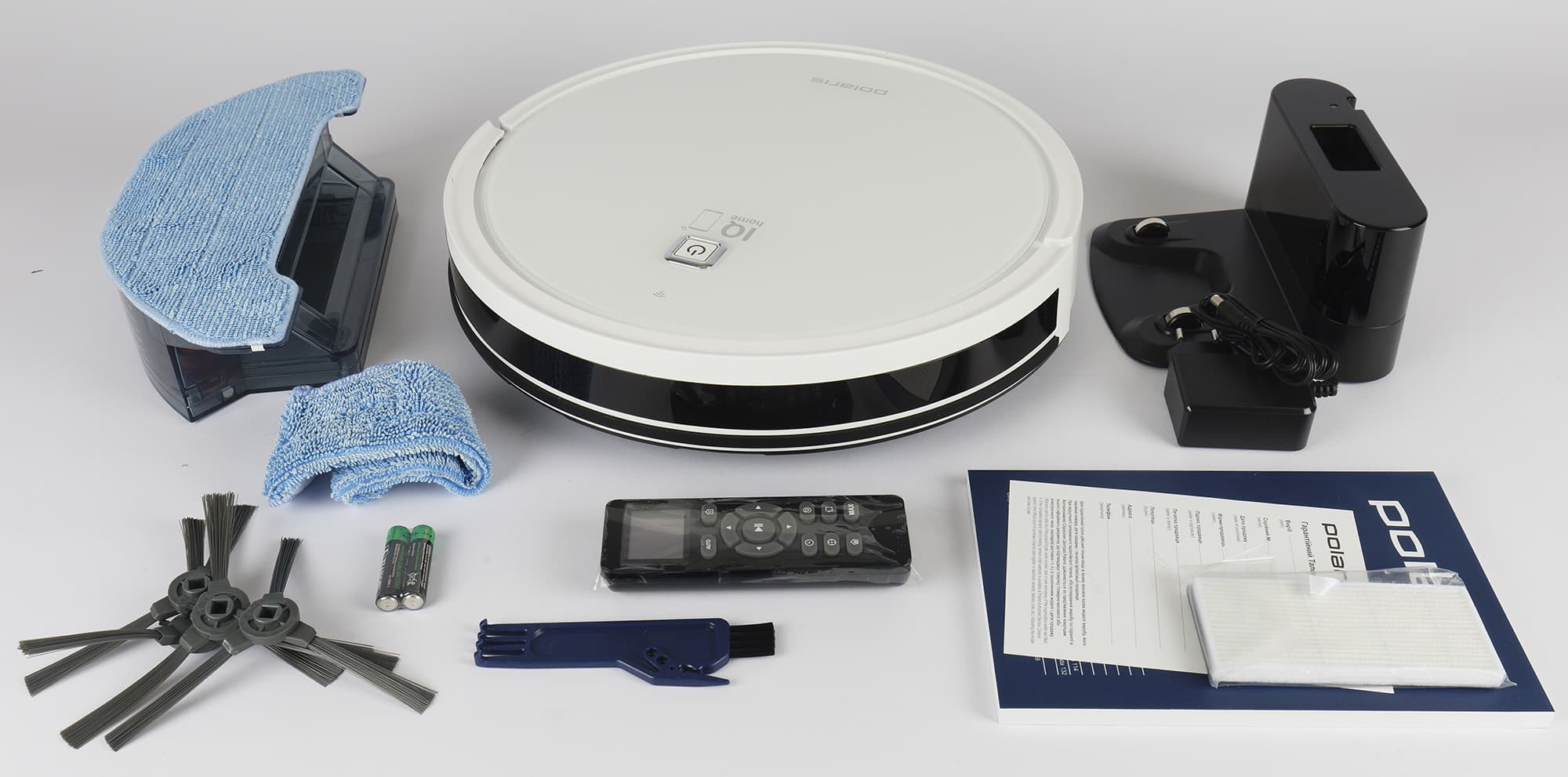 Герой нашего сегодняшнего обзора — робот-пылесос из средней ценовой категории. Polaris PVCR 1050 относится к семейству WiFi Home Aqua, а значит, как и прочие устройства из этой серии, способен производить влажную уборку, поддерживает работу с мобильным приложением и интеграцию с голосовыми помощниками типа «Алисы» — вполне адекватный набор функций для стандартного домашнего устройства. От своих собратьев Polaris PVCR 1050 отличается слегка повышенной мощностью и чуть более емкой батареей. Предполагаем, что наш подопытный справится с тестами в среднем так же, как и другие устройства из серии WiFi Home Aqua. Или даже чуть лучше.
