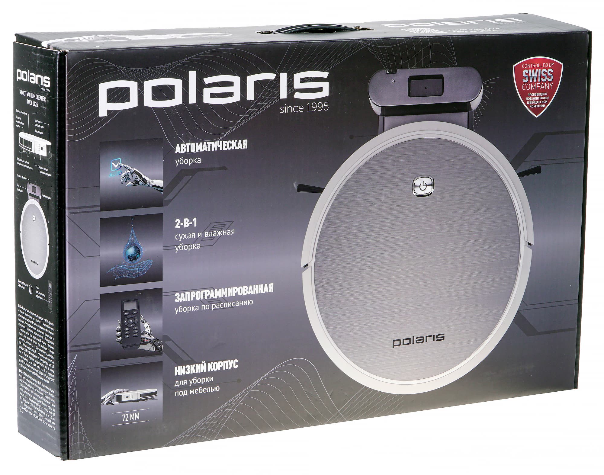 Два в одном — этим лозунгом все чаще руководствуются производители роботов-пылесосов, ставя в свои приборы заодно и модуль для влажной уборки. Одним из таких случаев для нас стал Polaris PVCR-1226.