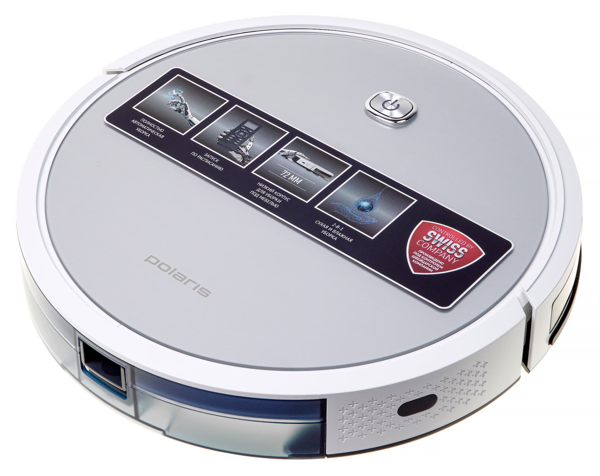 Polaris PVCR-1226 управляется единственной кнопкой на верхней панели. Первое нажатие запускает уборку в автоматическом режиме, второе приостанавливает ее.