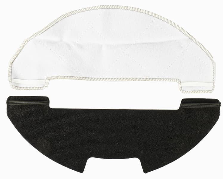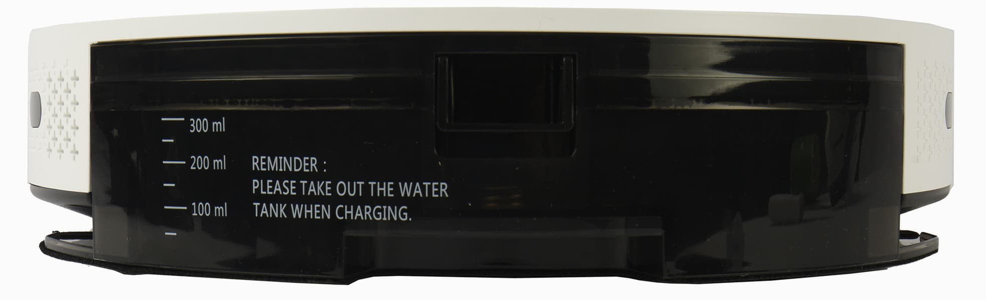 При влажной уборке жидкость покидает резервуар через четыре отверстия на нижней стороне. Рядом с ними располагаются липучки-велкро, удерживающие микрофибровую тряпку. Чтобы их шершавая поверхность не мешала скольжению прибора, при сухой уборки на рамку модуля натягивается специальный протектор из черного синтетического материала.
