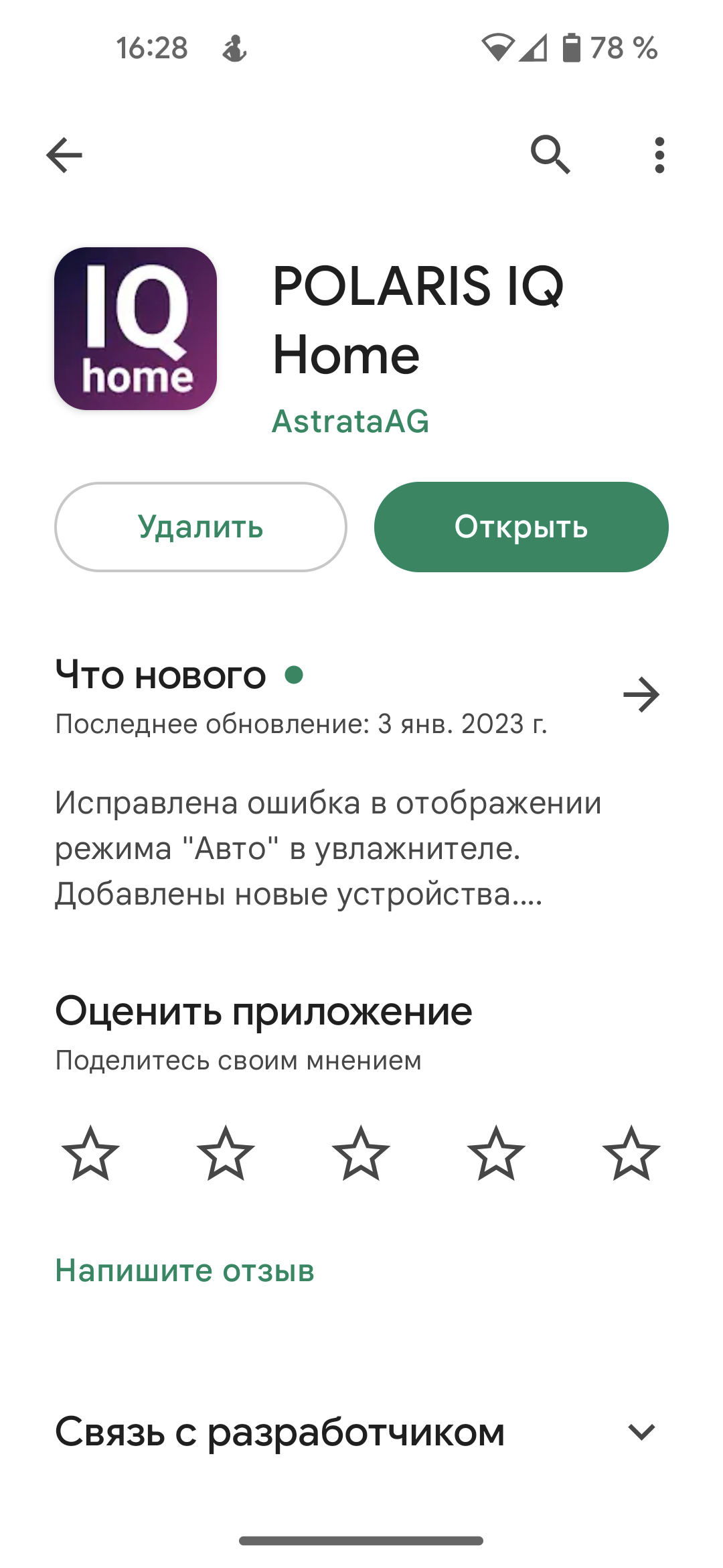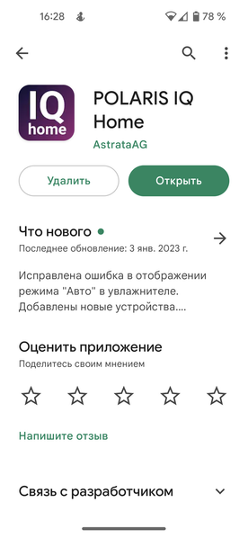 Для использования с пылесосом PVCR 1226 Wi-Fi IQ Home Gyro производитель предлагает уже знакомое нам приложение Polaris IQ Home (Astrata AG), объединяющее все умные приборы компании в единую экосистему. На момент создания обзора рейтинг программы составил 4.7 (свыше десяти тысяч отзывов, более 100 тысяч скачиваний) — ее популярность растет, а средняя оценка остается стабильно высокой.