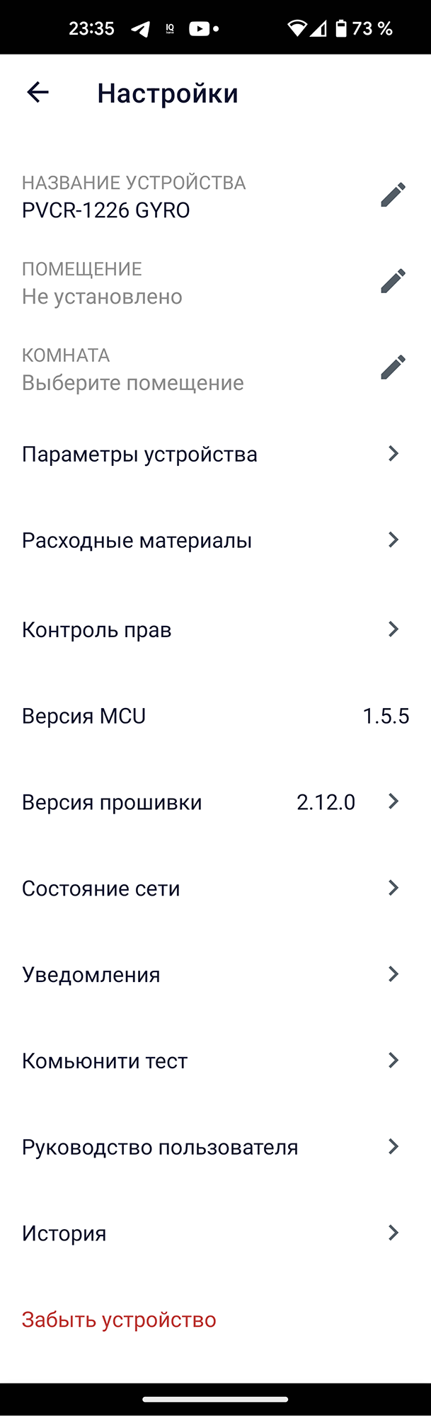 В разделе настроек можно передать права на управление пылесосом другим пользователям, у которых установлено приложение. Здесь же можно проверить и обновить версию встроенного программного обеспечения, прочитать документацию, ознакомиться с историей уборок и уточнить оставшийся ресурс расходных материалов.