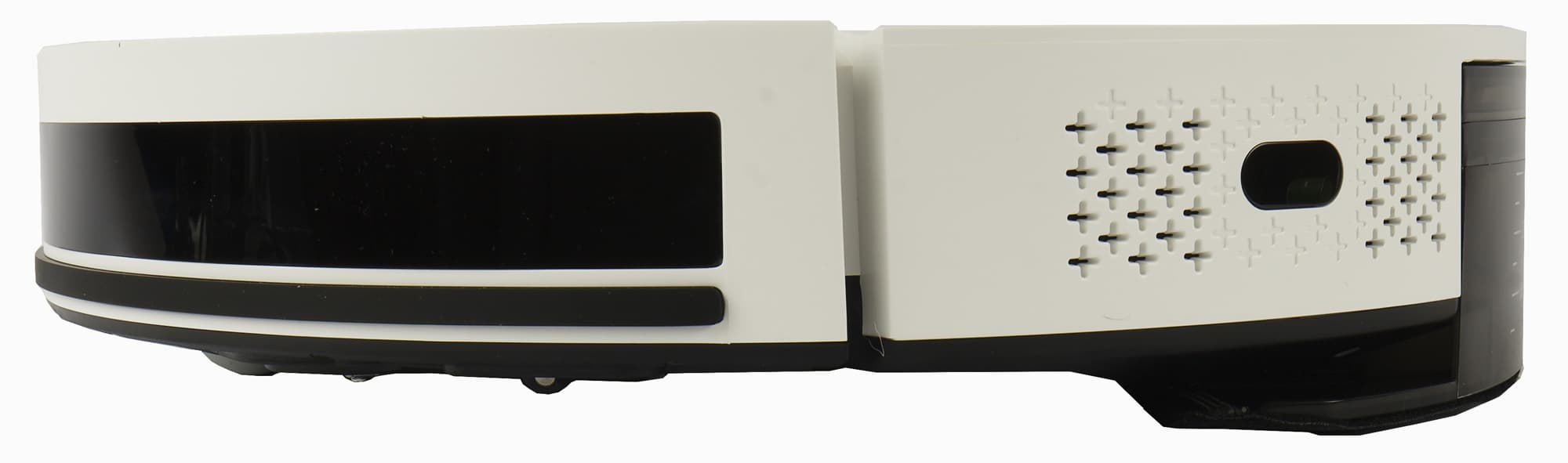 «Глаза» пылесоса скрыты за ИК-прозрачным темным стеклом, под которым установлена полоса пористой резины, оберегающая прибор и мебель от повреждений при столкновениях. Две дополнительные пары сенсоров в овальных окошках «смотрят» в заднюю полусферу прибора.