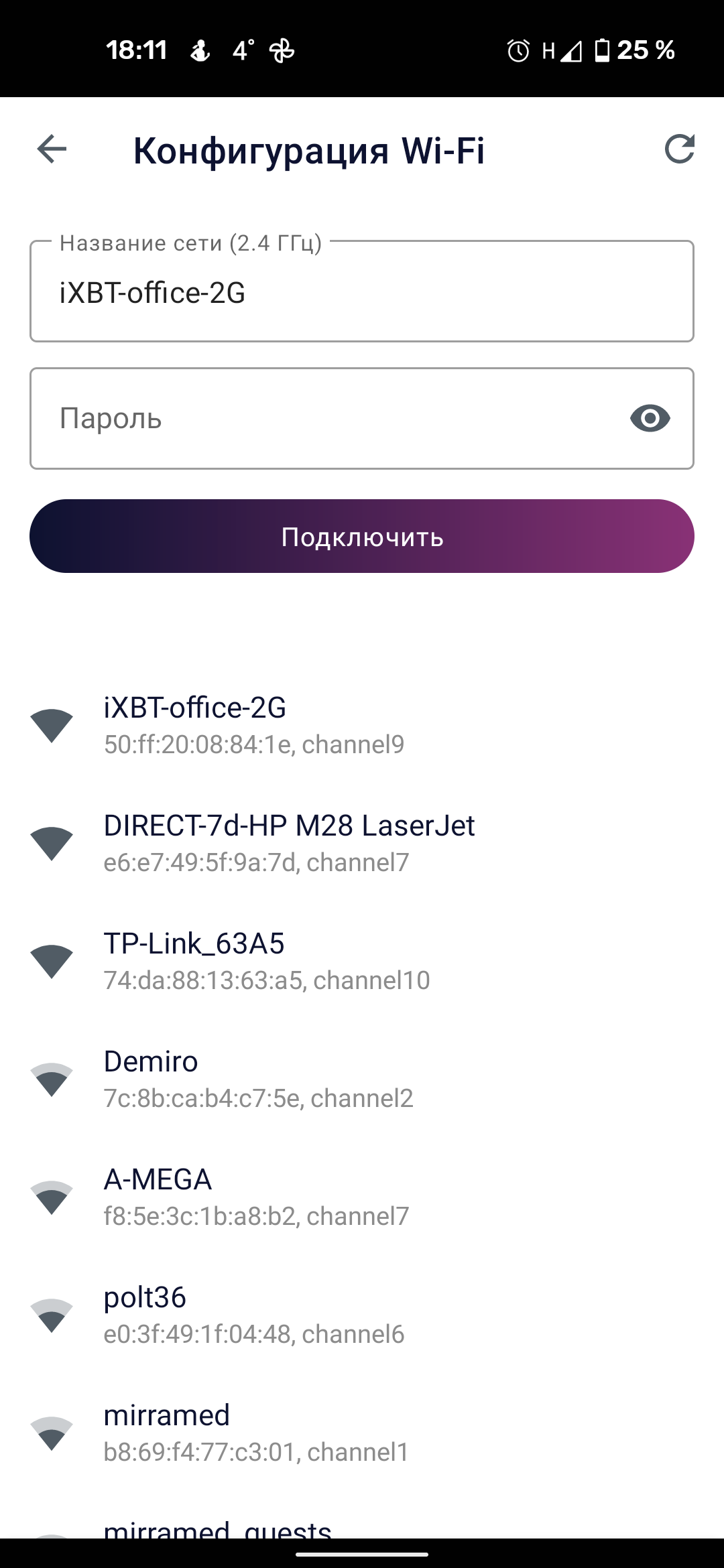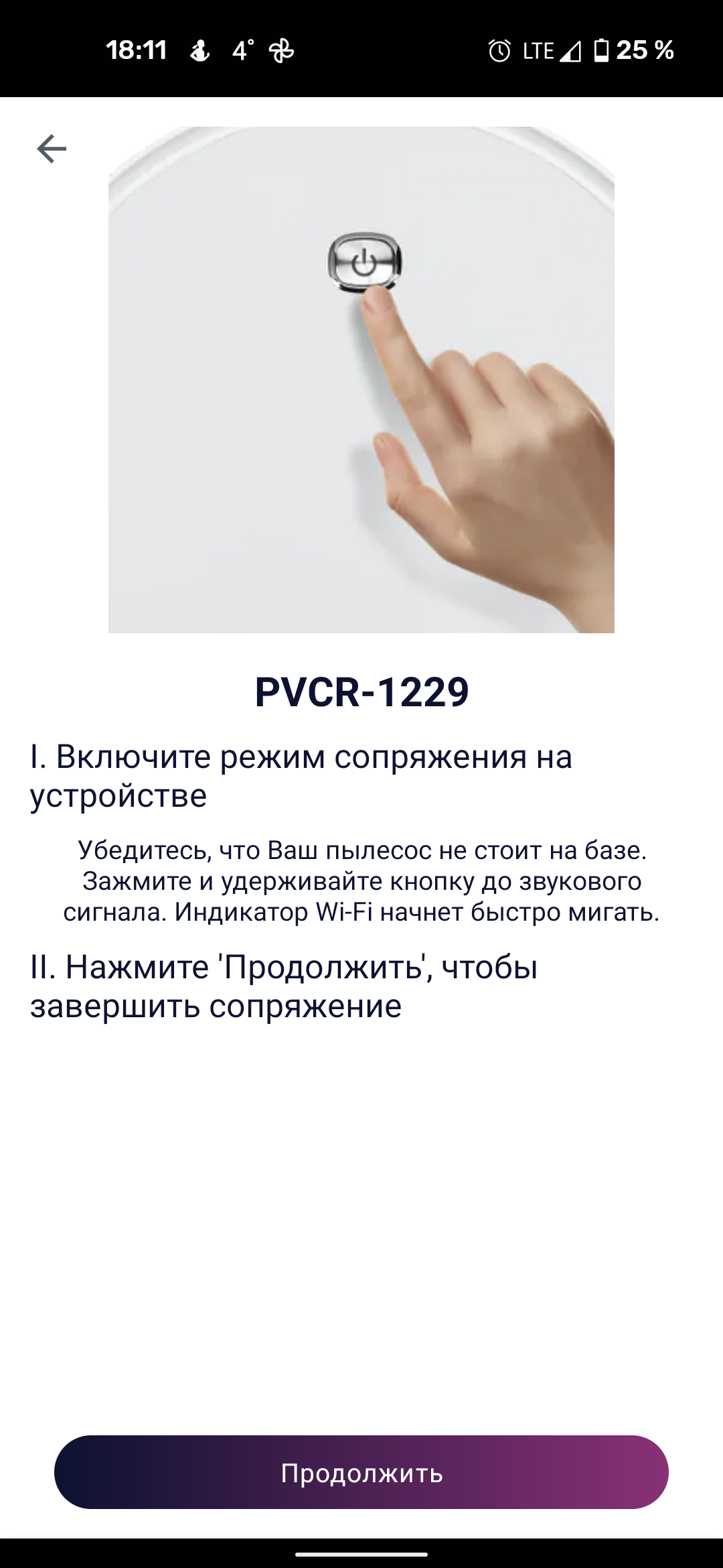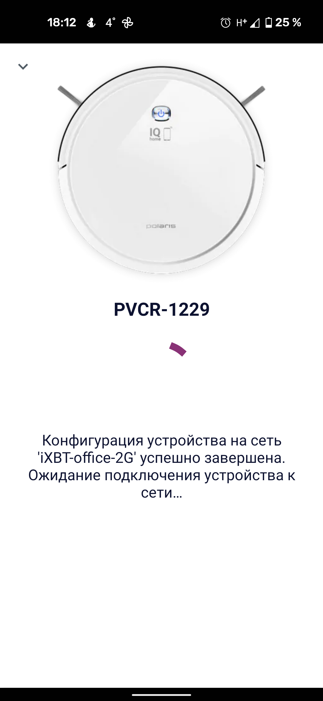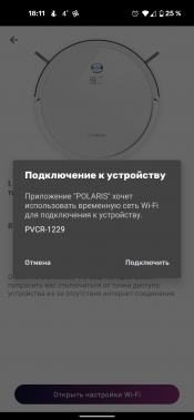После длинного нажатия на кнопку управления пылесосом он входит в режим обнаружения и создает временную Wi-Fi-сеть. Приложение на короткое время переключается на нее и загружает в пылесос сведения о нашей основной сети. Еще секунд двадцать — и процесс настройки закончен.