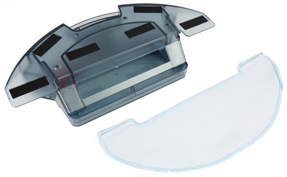 D-образная тряпка из микрофибры крепится на модуль при помощи шести липучек-велкро и увлажняется через четыре микроотверстия в дне резервуара.