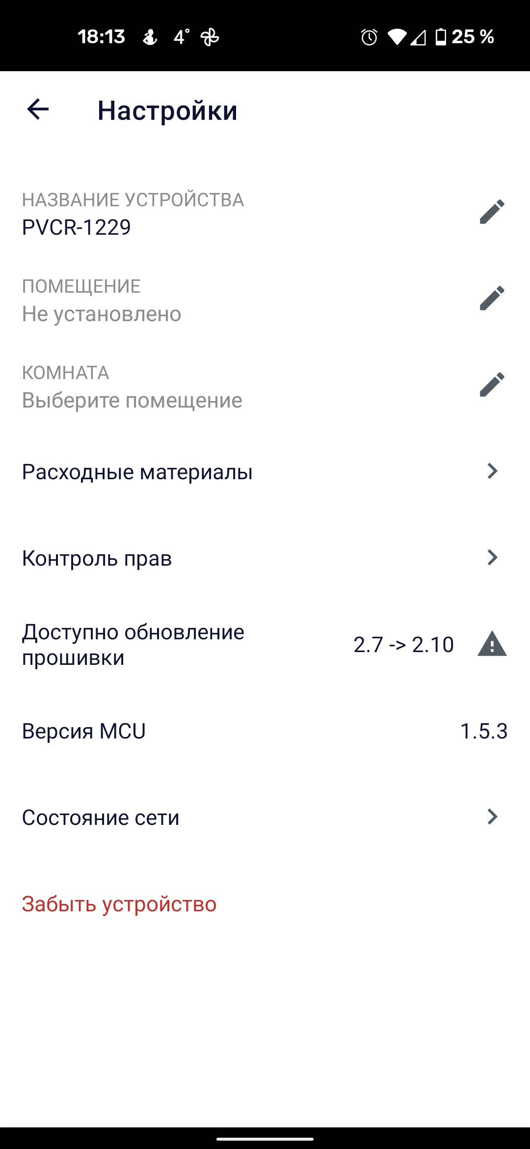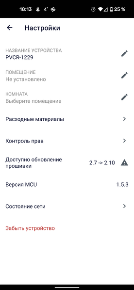 Программа предлагает настроить имя робота и его местоположение (это, впрочем, можно сделать и позже), а затем открывает страницу настроек. Перед началом работы следует убедиться, что в прибор загружена последняя прошивка. А если доступно обновление — загрузить его.