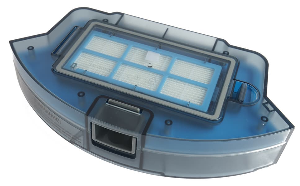 Сменный модуль мусоросборника занимает большую часть кормы устройства. В комплекте у этой модели их два: традиционный контейнер для сухой уборки и еще один для комбинированной — сухой и влажной.